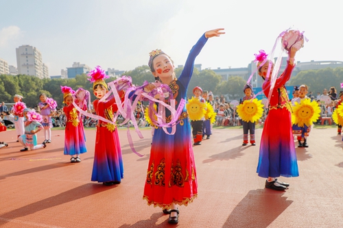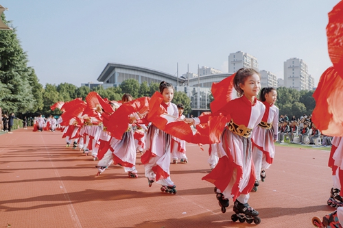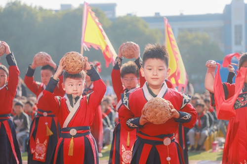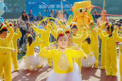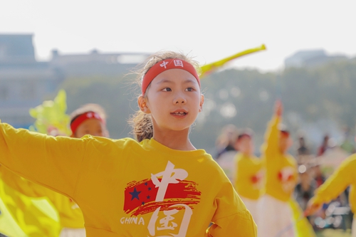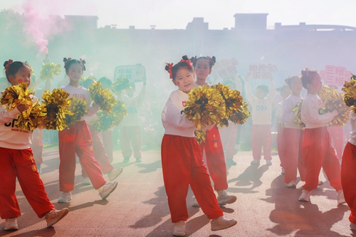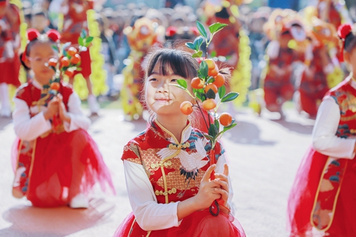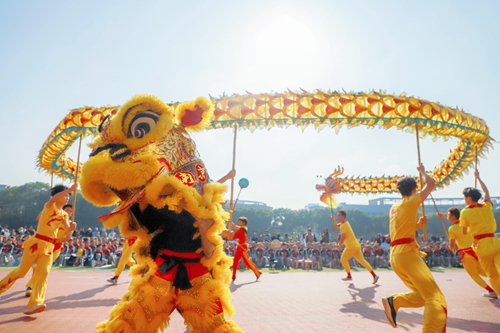 家长方阵以及舞龙舞狮队组成14个方阵,