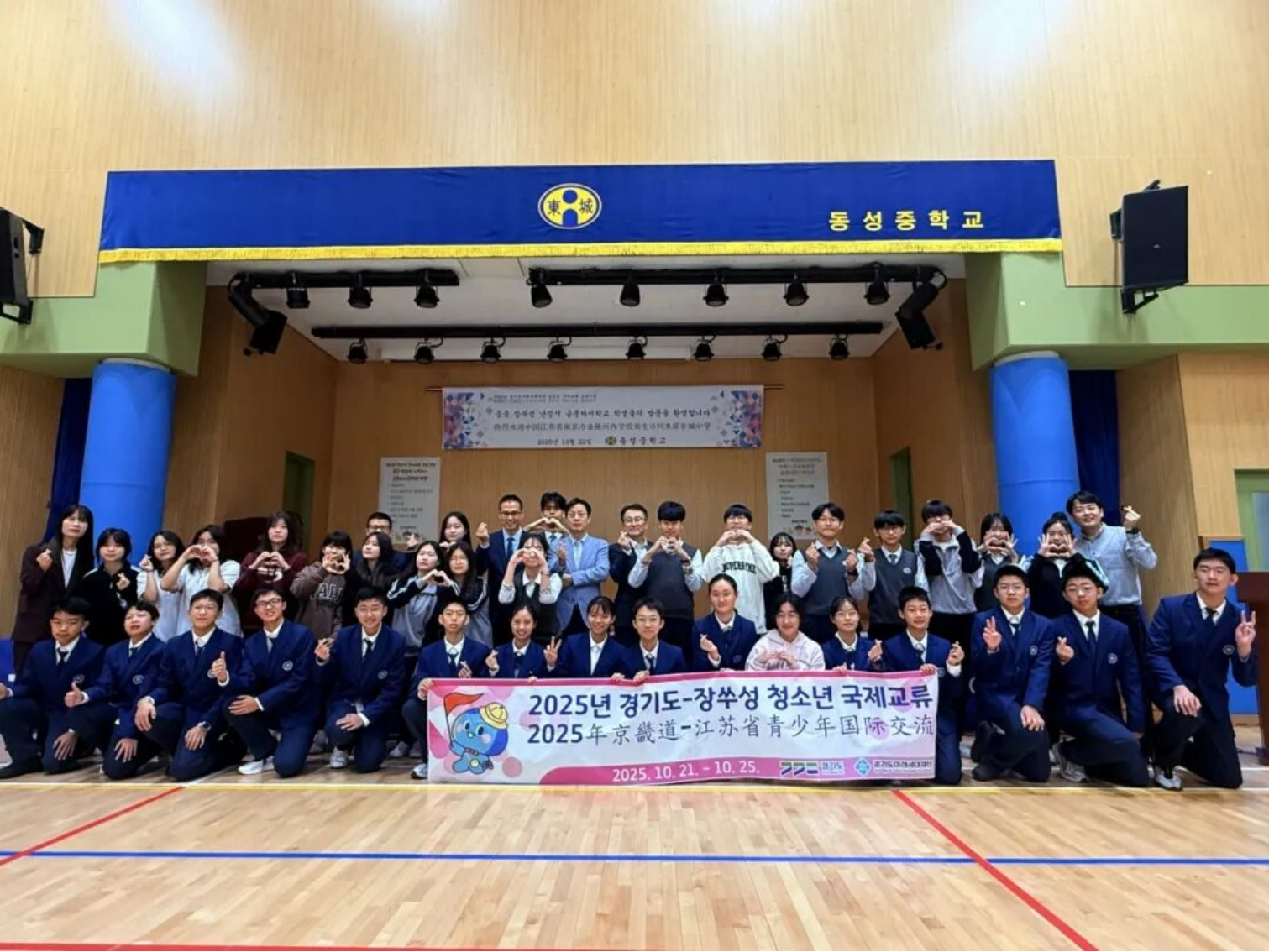 欢迎仪式在京畿道水原东城中学拉开帷幕。
