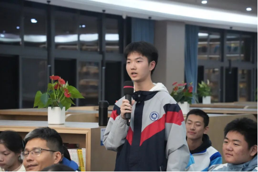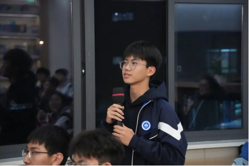 讲座后,金陵河西学校高中部2018届校友沈骏杰作现场分享。他高中选修的是物理化学,大一修的也是化学,大二时以转系考试第一名的成绩转入了中文系,硕士研究的是甲骨文。他以自己的跨界经历为莫教授的“文理兼容”观点提供了生动的佐证。