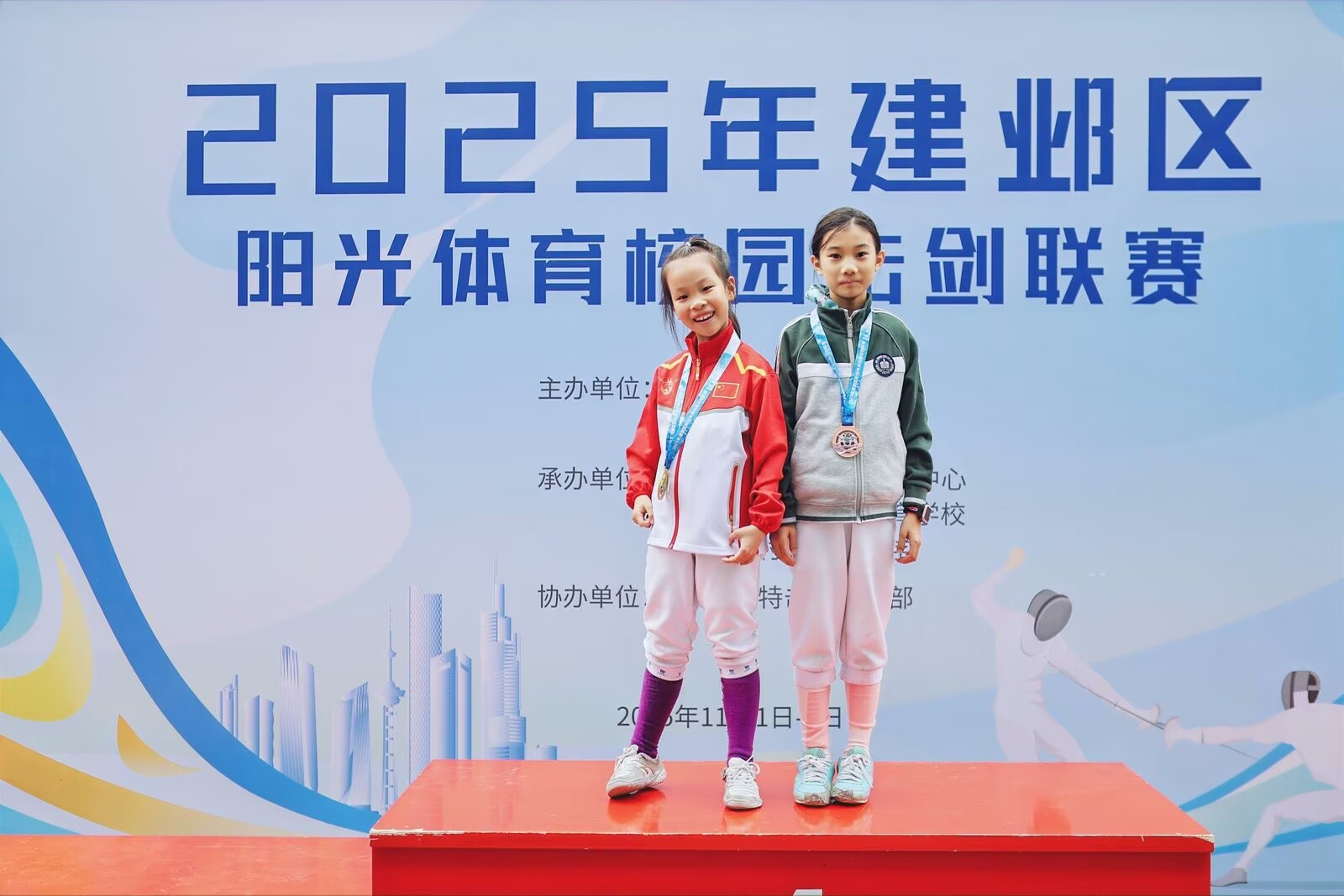 击剑馆内,银光闪烁。金陵河西击剑队同学们步伐灵动,出手如电,成功将2025建邺区青少年阳光体育校园击剑联赛全区一等奖第一名的荣誉收入囊中,尽显优雅与力量的竞技魅力。