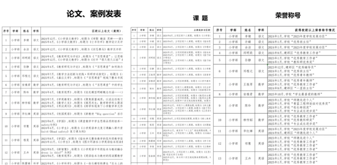 名师计划培养项目第二期学员在省、市、区规划课题、个人课题申报中,获得立项课题数60项,省、市、区各级论文发表和获奖179篇,获得省、市、区、校各级各类表彰共计187人次,其中区级以上表彰100人次,区级以上基本功竞赛获奖48人次,区级以上课堂教学竞赛获奖46人次,有多位学员在省、市教学基本功竞赛、课堂教学竞赛中获一等奖。