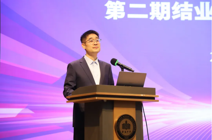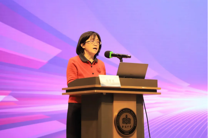 李玉敏副校长回顾了“名师计划”第二期的研修历程。报告以“到中流击水,浪遏飞舟”为主题,系统梳理了两年来68位学员的丰硕成果,深刻阐释了项目对教师“生命自我建构”与“学校团队发展”的双重价值,指出学员们在见识“良师”典范、汲取前沿思想的过程中,实现了从“成为溪流”到“浪遏飞舟”的成长跨越。