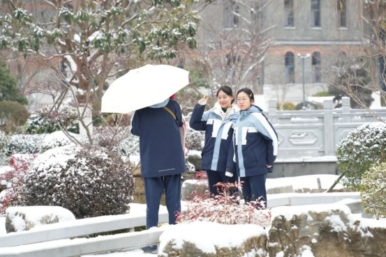 一场降雪为校园换上了冬日装扮。