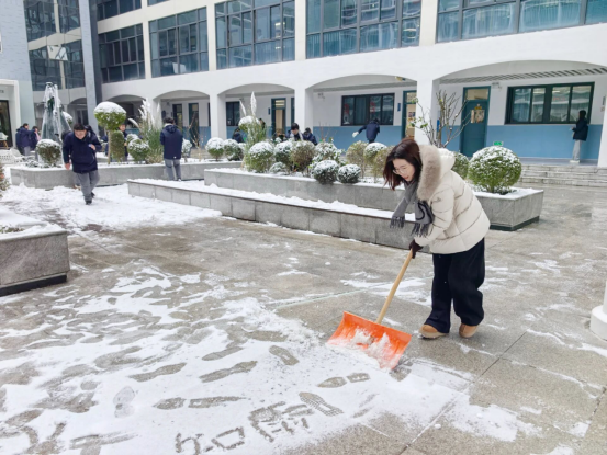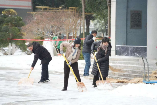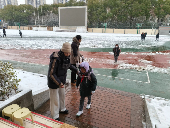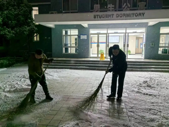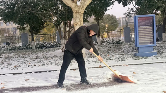 冒雪引导学生入校、提醒安全,