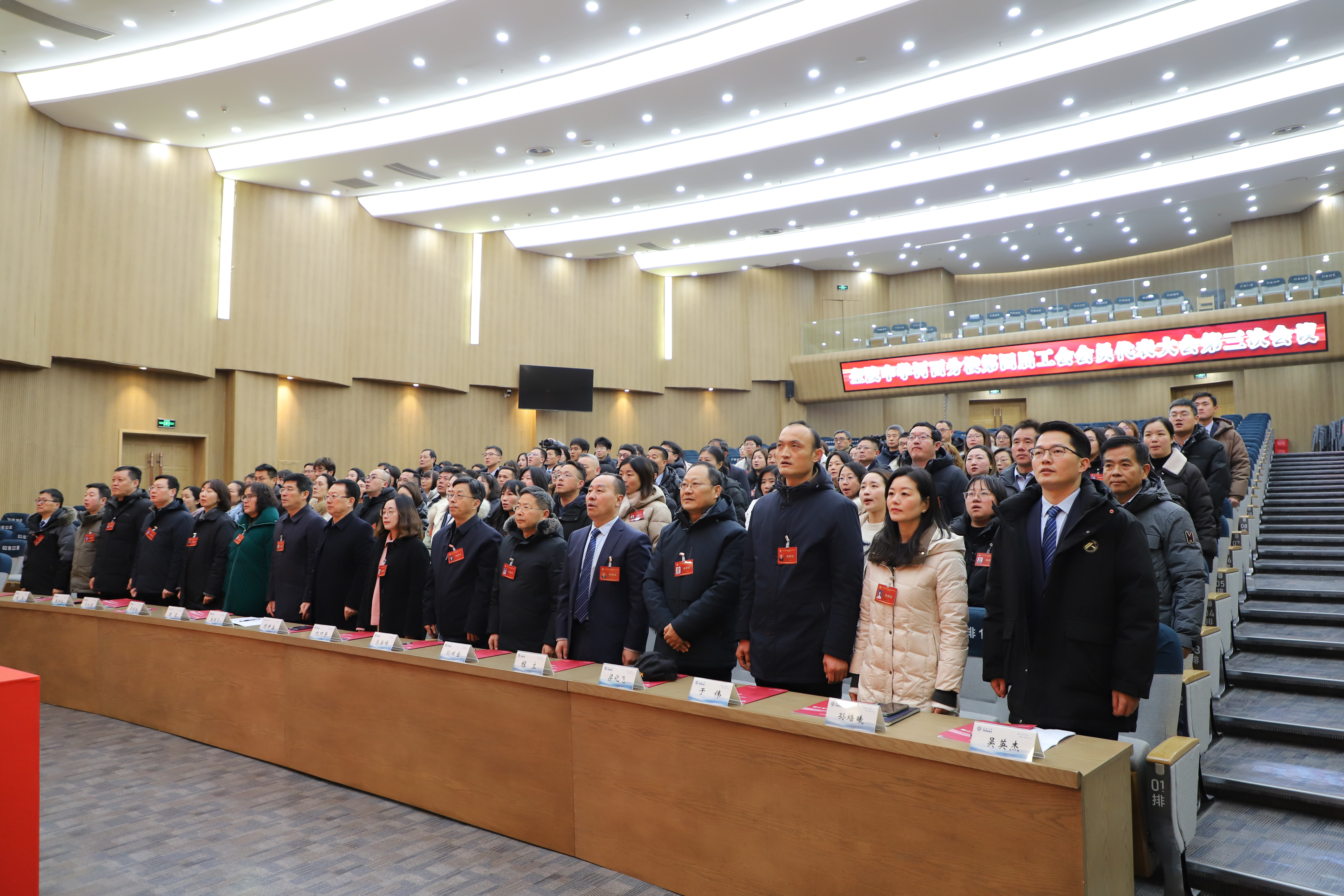 2月7日下午2时整,在激昂雄壮的国歌声中,金陵河西学校第四届工会会员代表大会第三次会议隆重开幕。