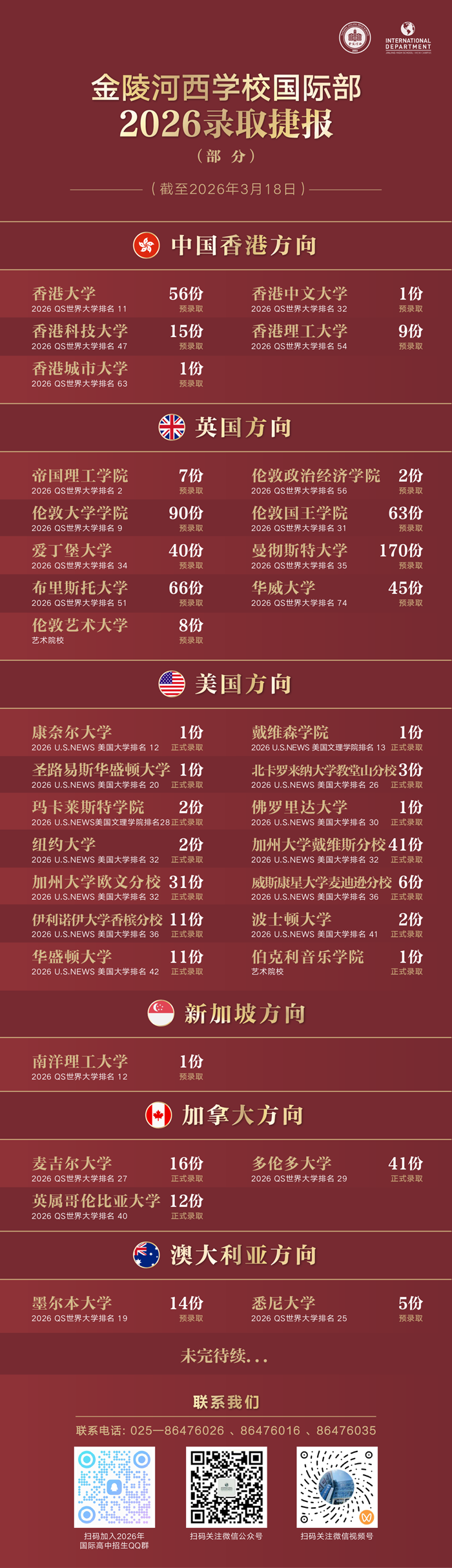 金陵河西已预录取香港大学54人,领跑江苏,全国前列!
