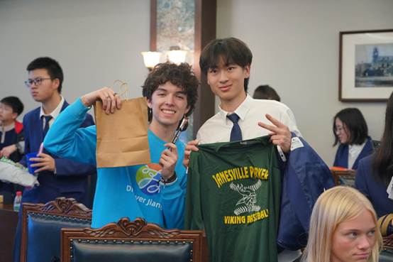 中美师生互相赠送了精心准备的纪念品,双方再次合影留念,为本次交流活动画上圆满句号。