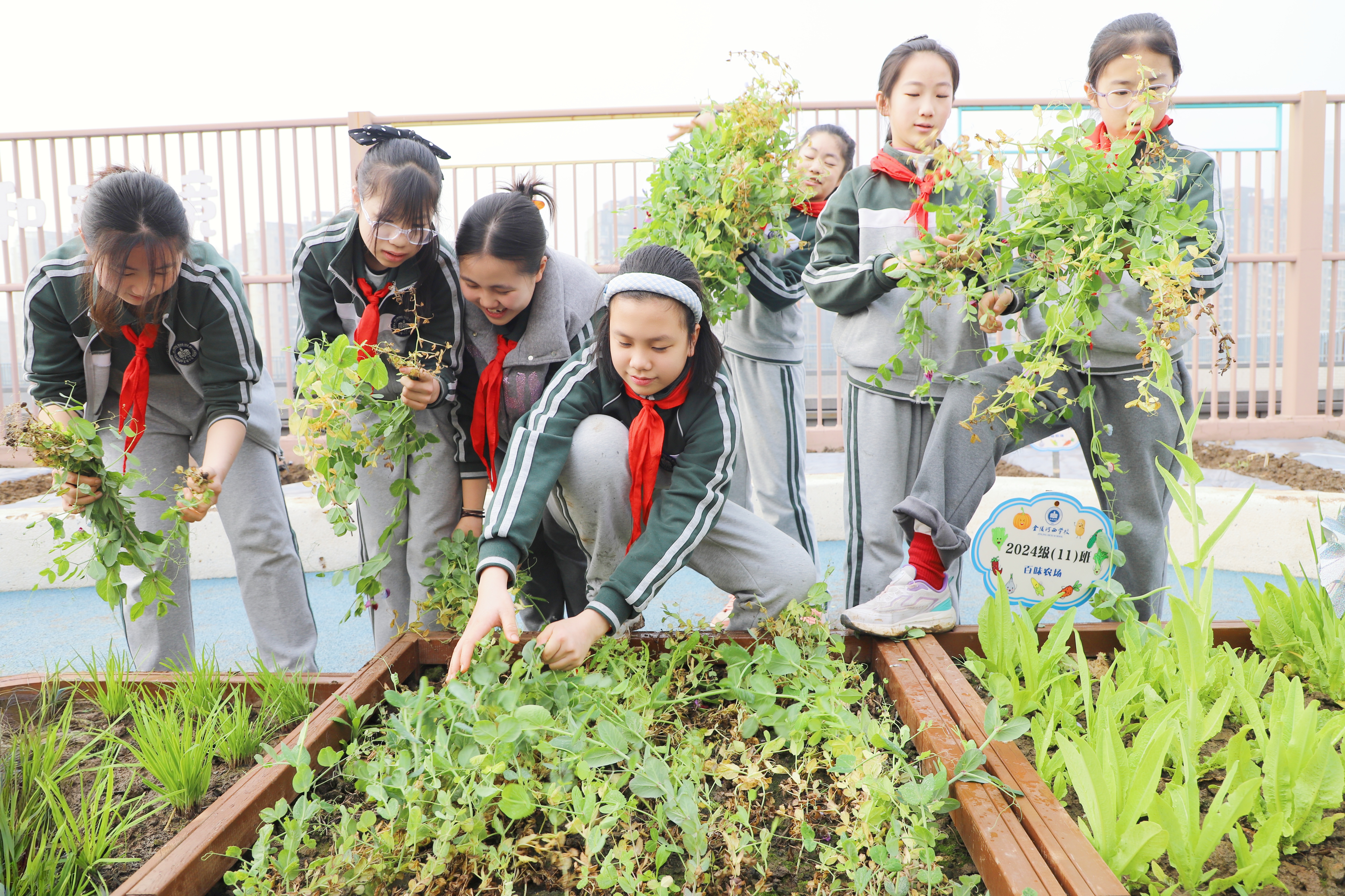 “爸爸妈妈上班,在家写作业、看平板,哪有在学校整理菜地有意思!”有同学兴奋地说,手上拔草的动作不停歇。