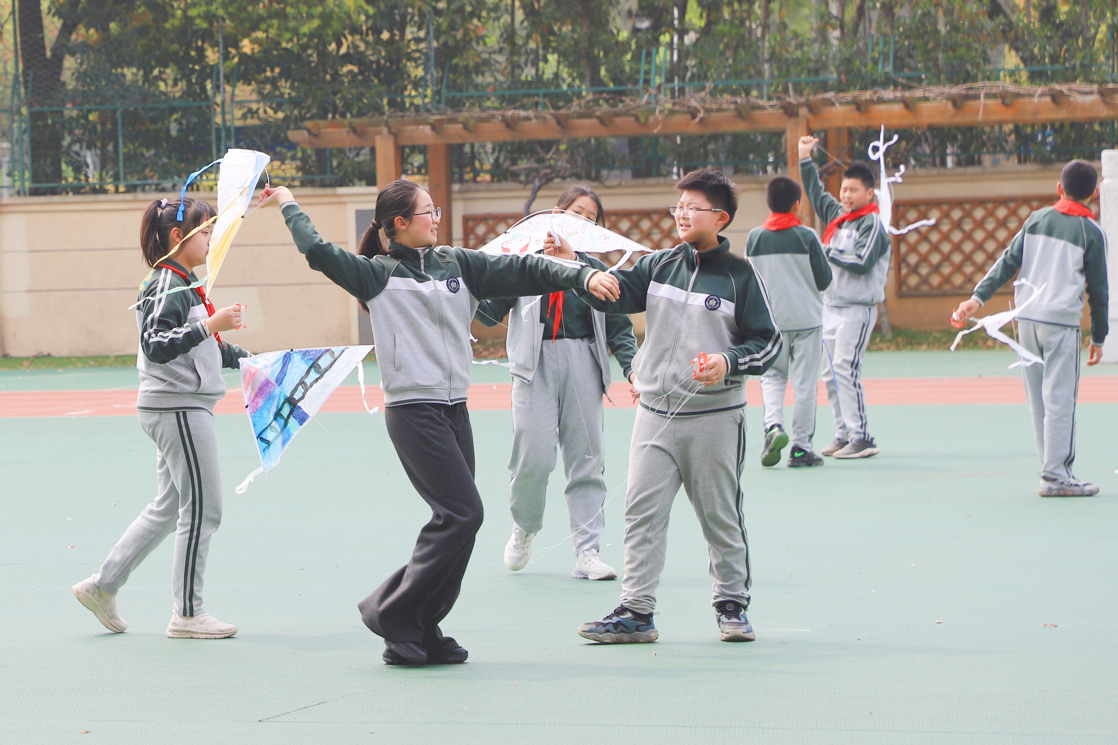 操场上,风筝飞向蓝天,飞盘在空中划出弧线,孩子们在阳光下奔跑、跳跃、欢笑。学校紧扣“健康第一”的理念,用体育运动唤醒身体,也用活力点燃春天。