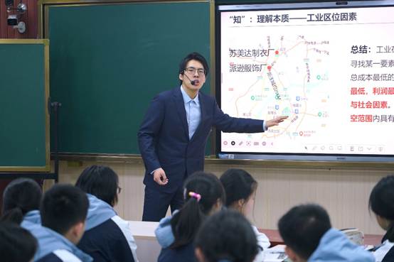 高中部地理老师苏博阳依据真实学情,带领学生走进《工业区位因素》。他设置“我是工业大亨”的教学情境,机智地将现实的产业布局引入课堂,引导学生自主感悟、合作讨论,理解地理学科本质,展现了从生活经验向学科素养跨越的生动实践。