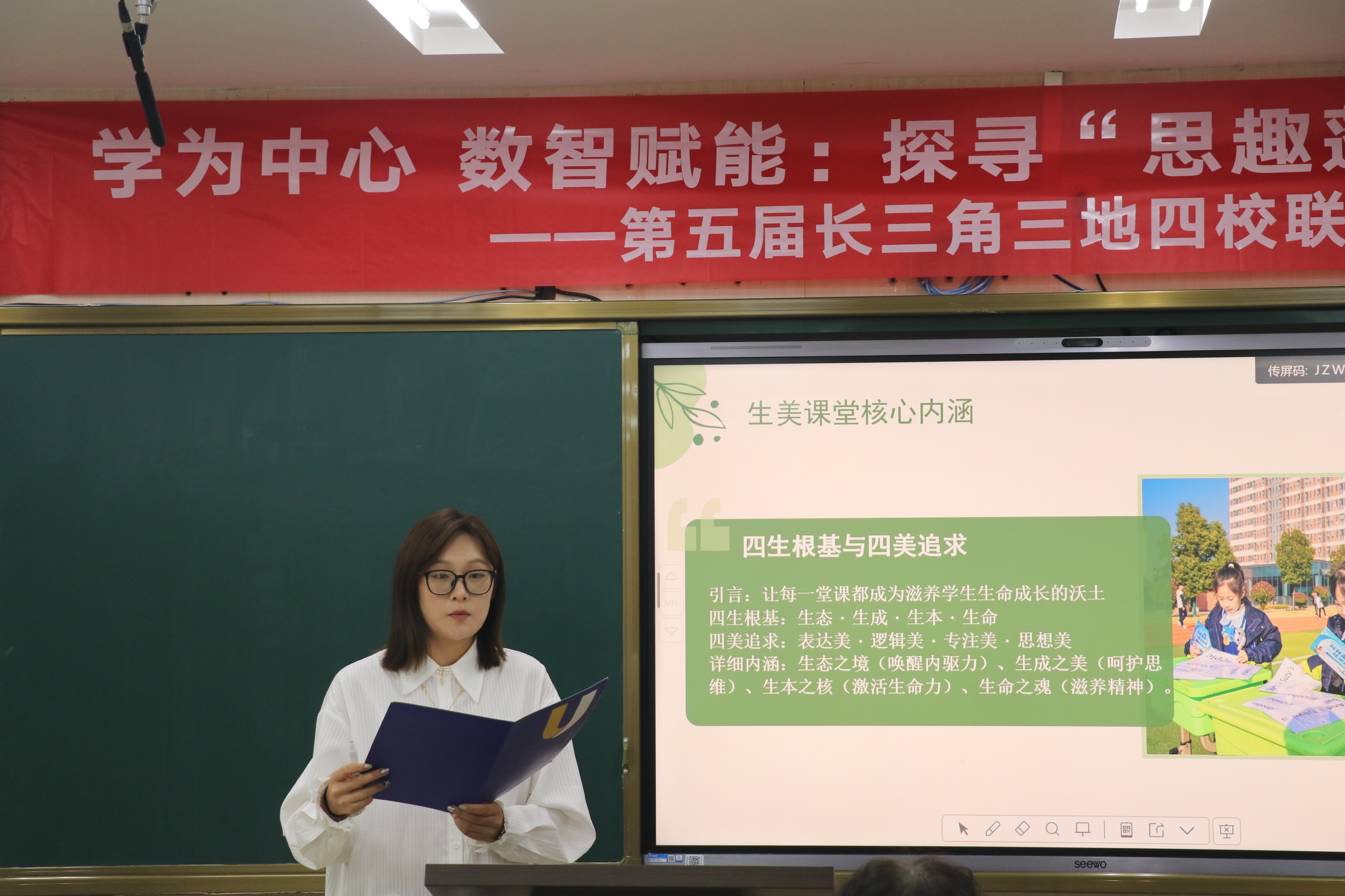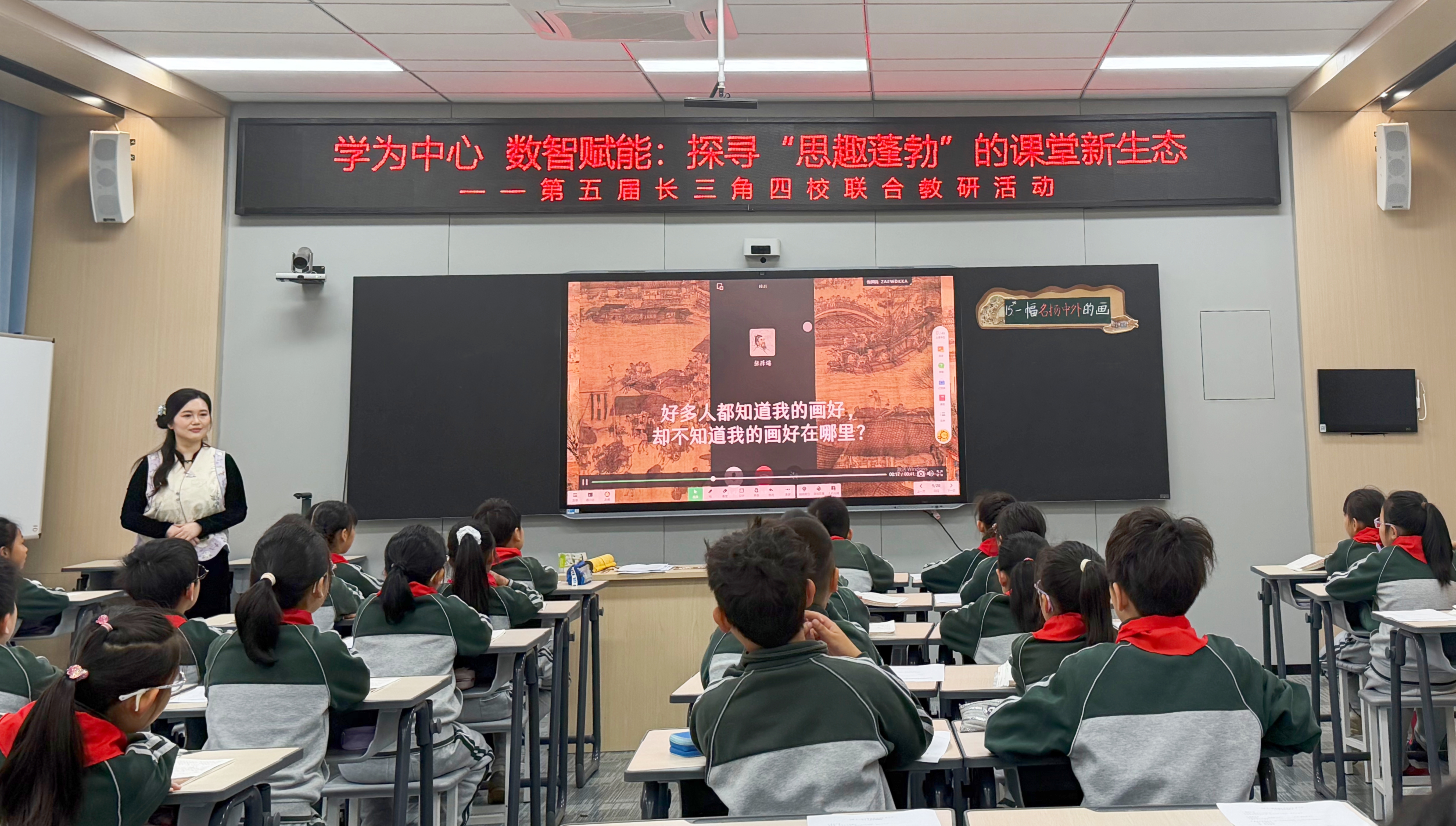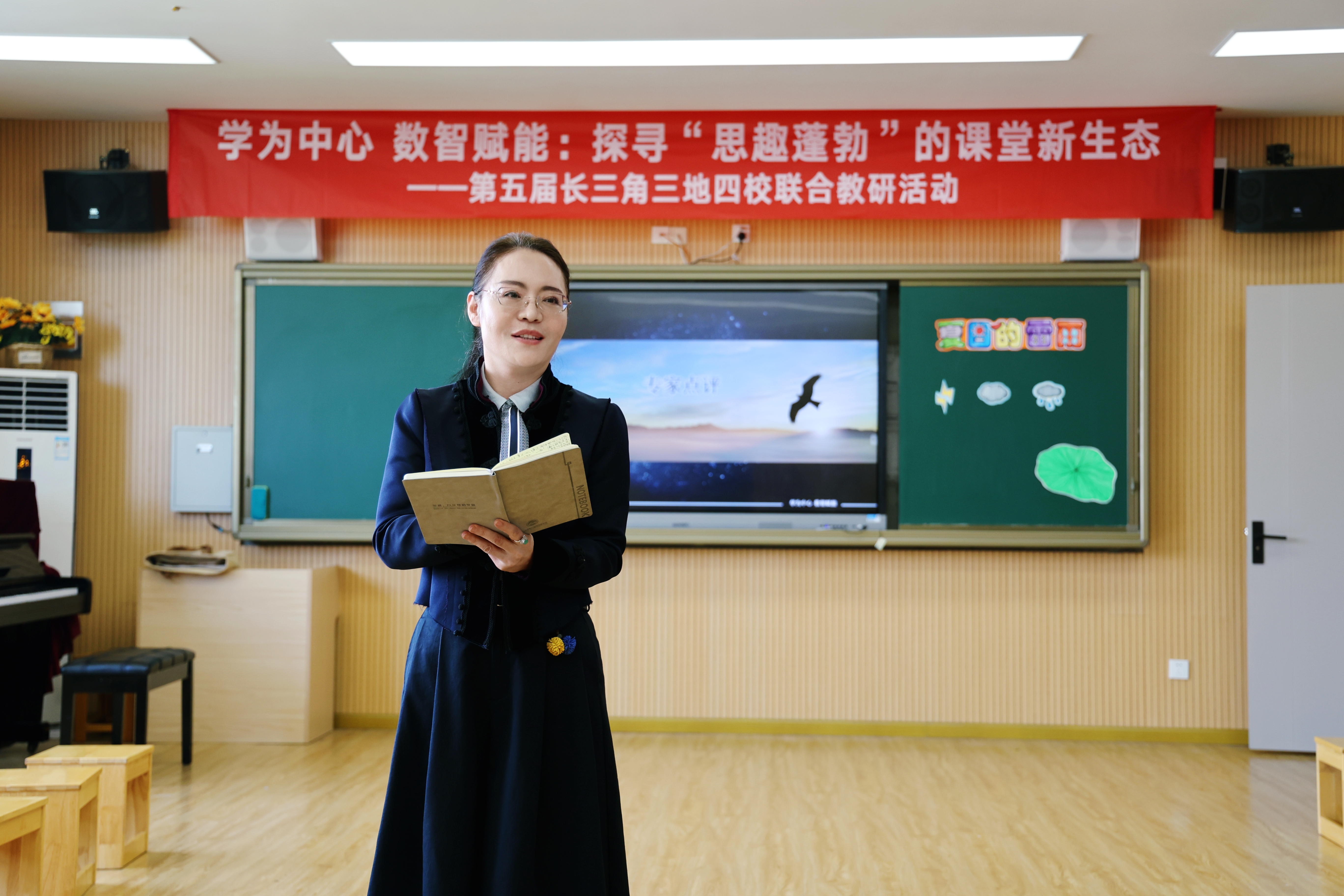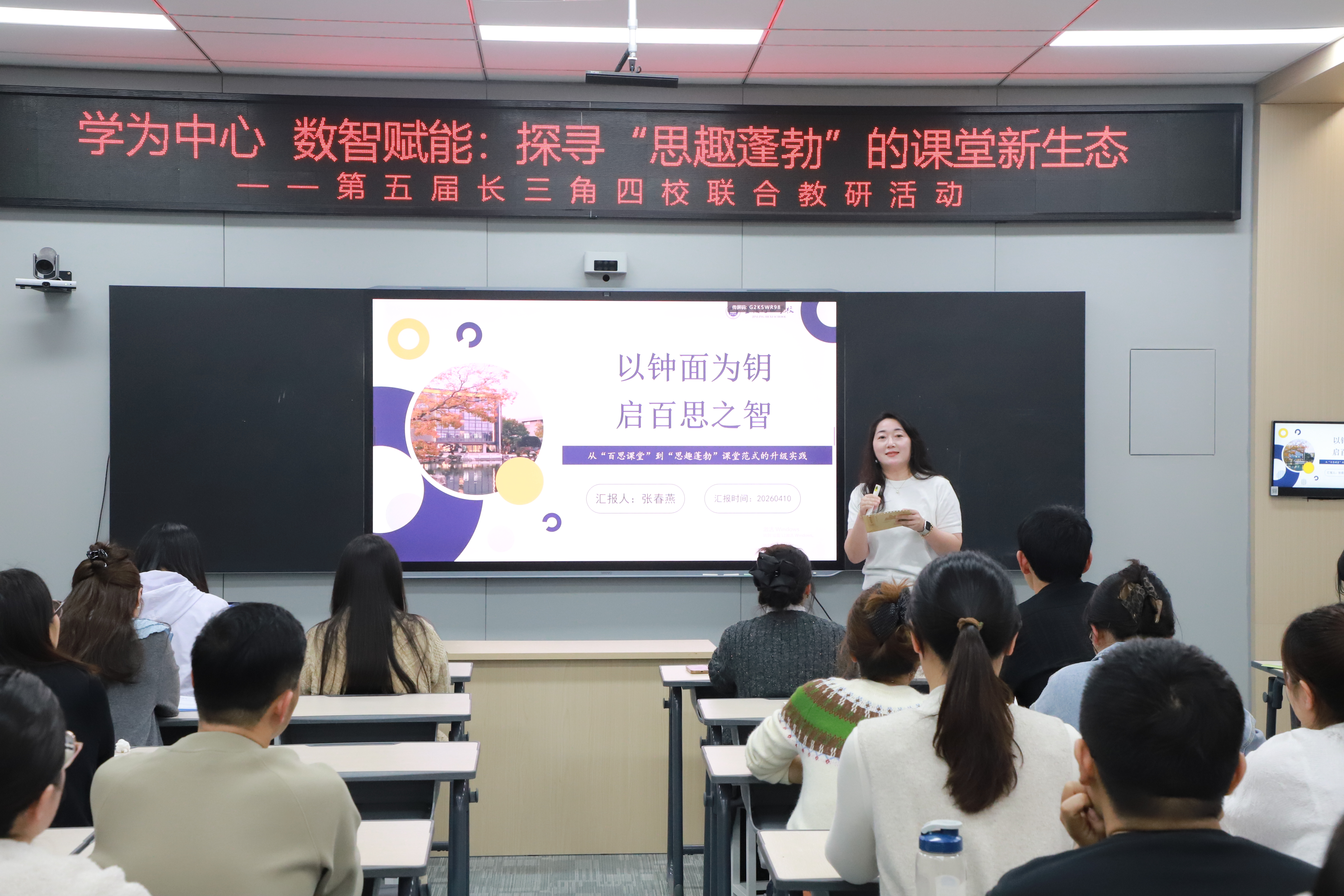 本次活动以“学为中心 数智赋能:探寻‘思趣蓬勃’的课堂新生态”为主题,聚焦语文、音乐、数学、英语四大学科,通过优质课例展示、微讲座分享、专家点评引领三大板块,全方位呈现三地四校在课堂转型、数智赋能、素养落地中的实践与思考。