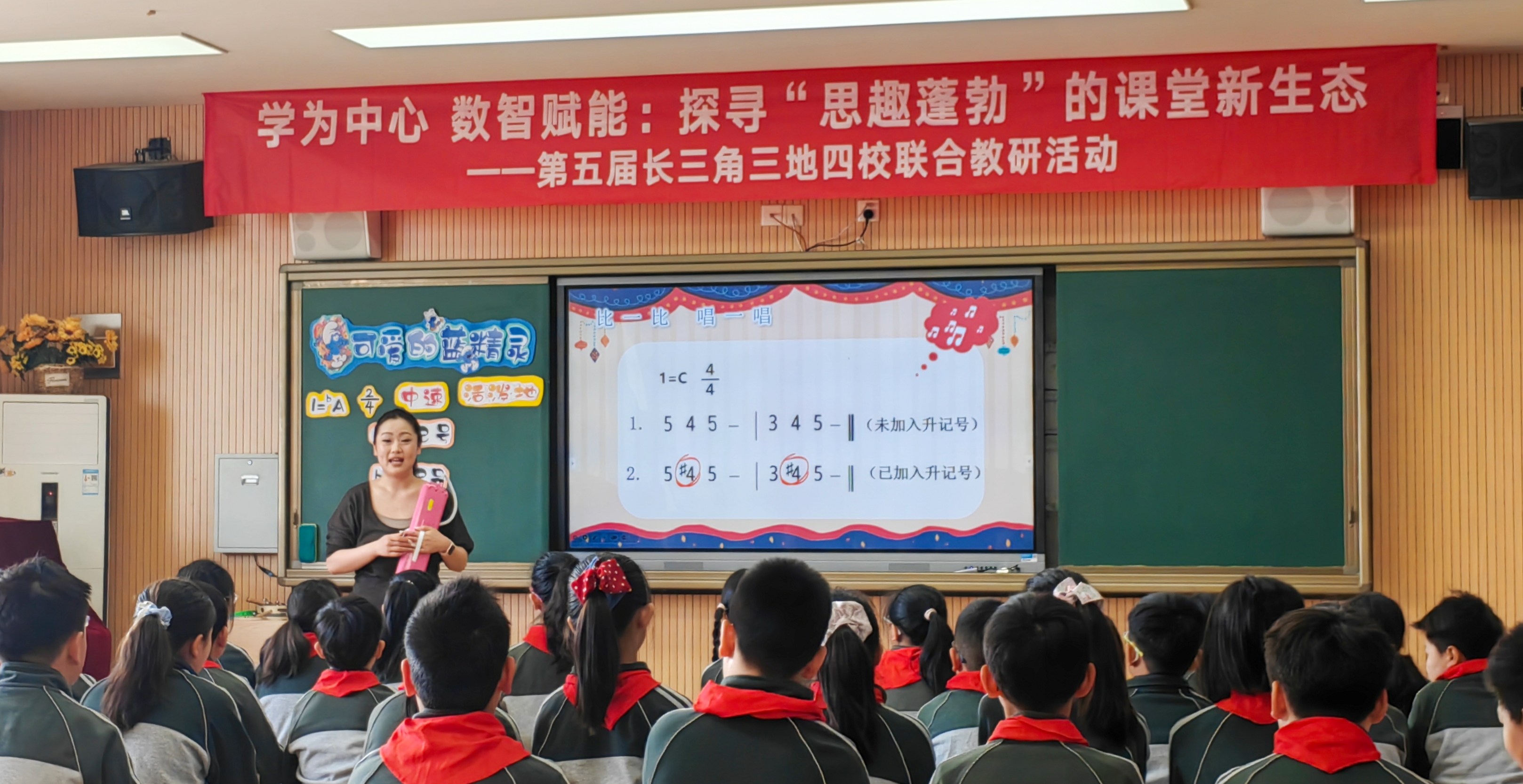 北京外国语大学附属新华外国语学校成雨辰老师执教五年级《可爱的蓝精灵》,融入口风琴听辨与变音记号教学,用活泼欢快的旋律传递团结勇敢的品质。