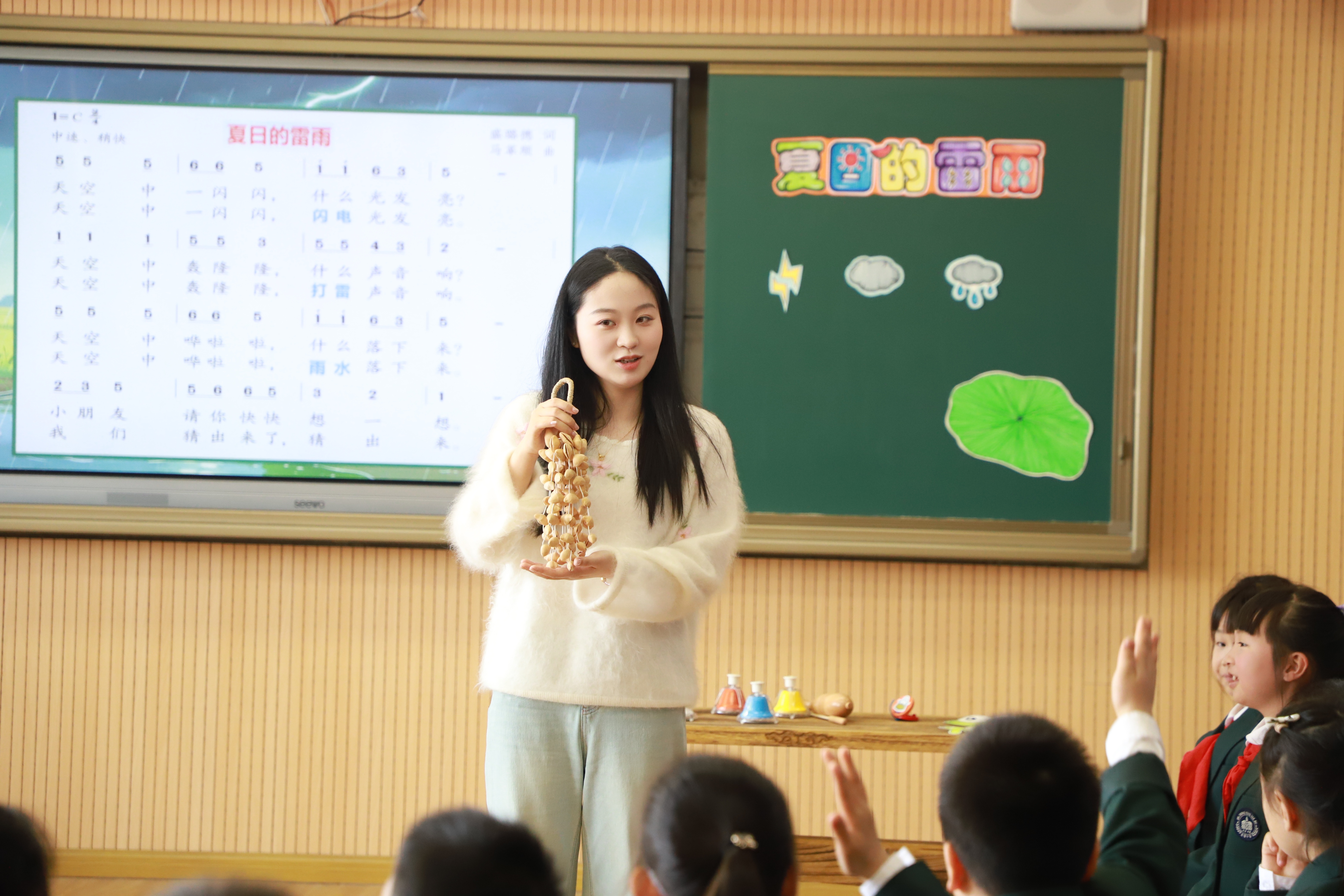 金陵河西学校小学部刘丽雯老师执教二年级《夏日的雷雨》,结合声势律动、小乐器伴奏与诗乐创编,精准突破切分节奏,展现自然与音乐的完美融合。
