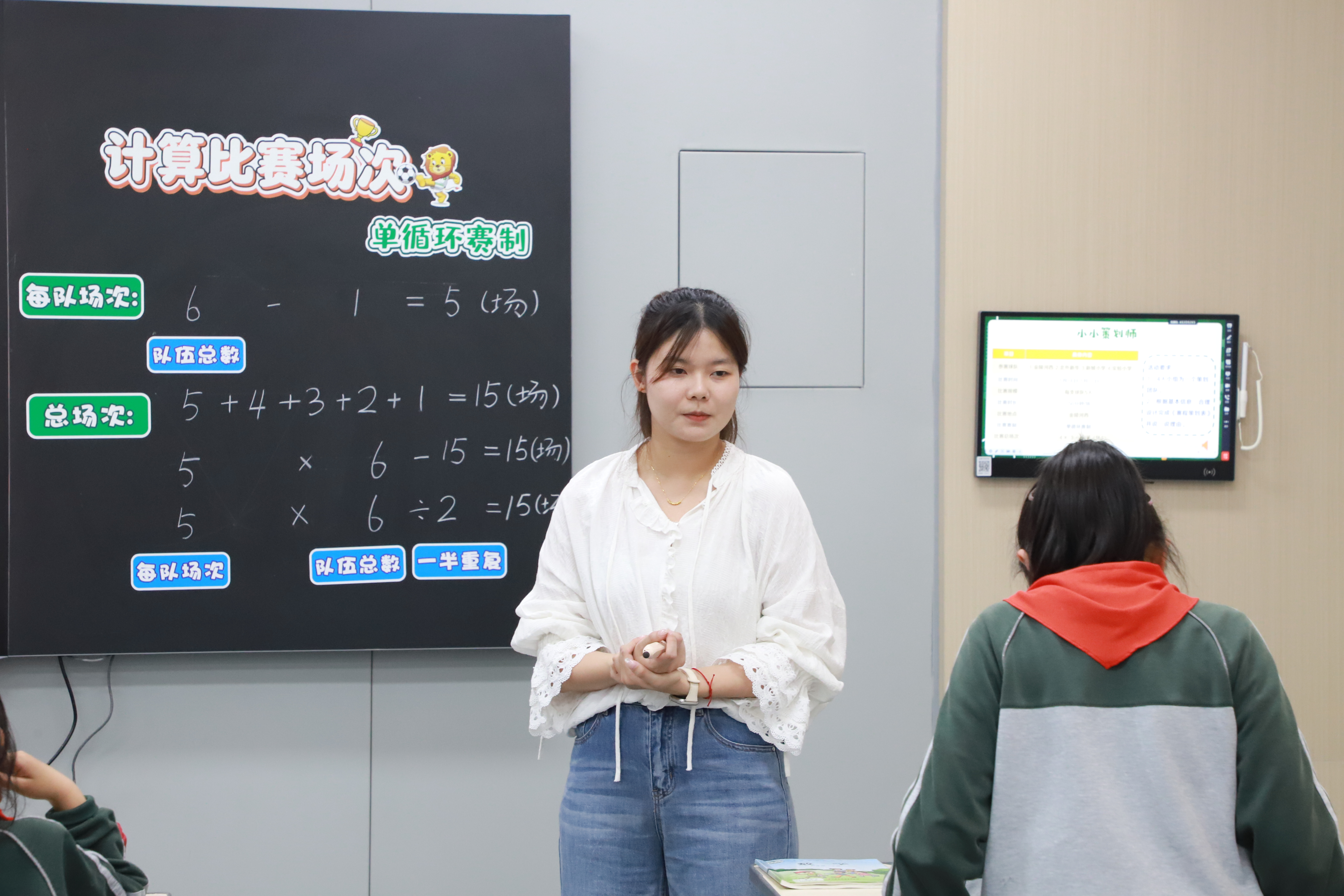 上海市浦东新区实验小学薛德丽晴老师执教四年级《计算比赛场次》,以足球赛事为情境,探究单循环赛制计算方法,建立多样的数学模型,培养有序思考与解决问题能力。