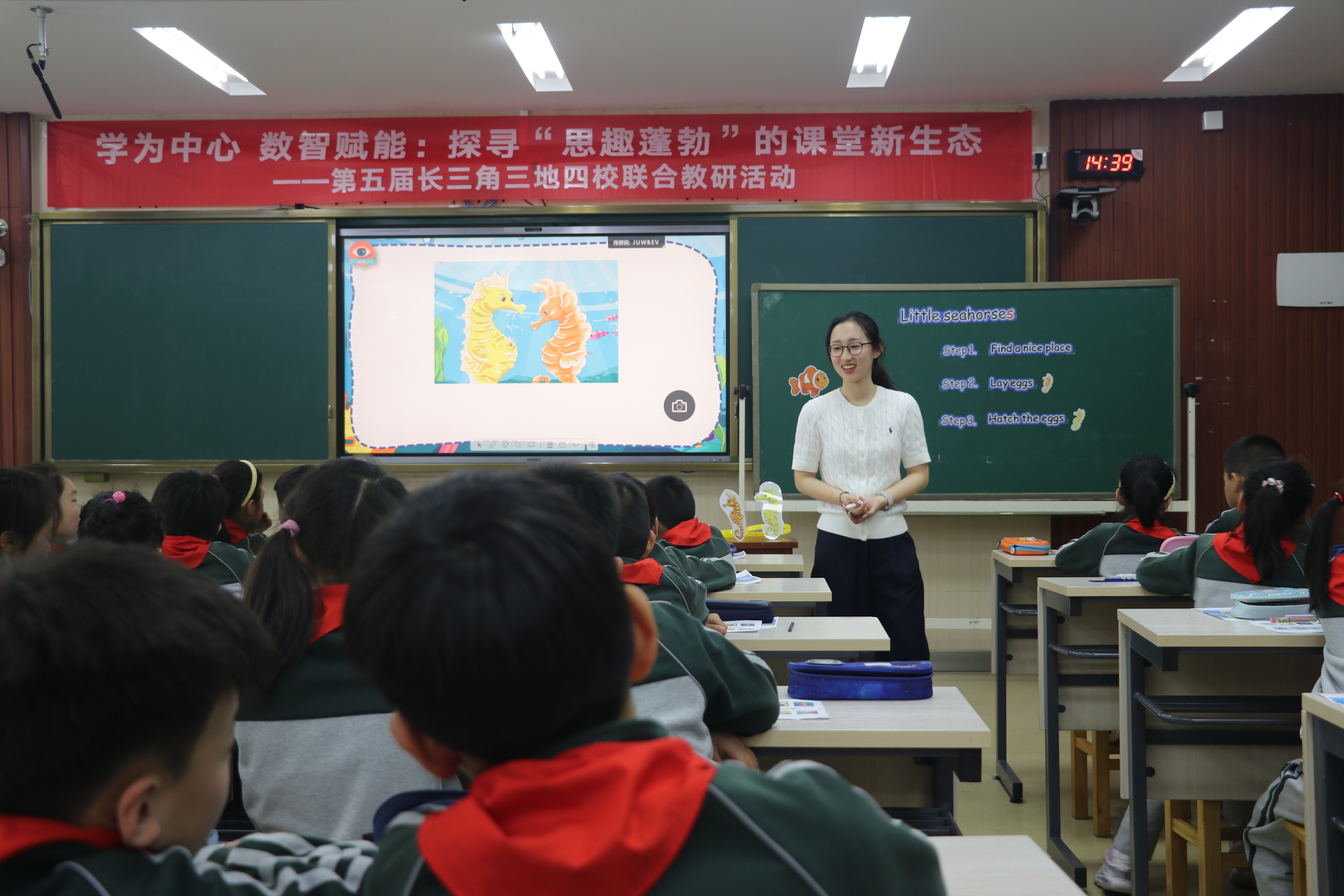 上海市浦东新区新城小学陆婷一老师执教二年级《Little seahorses》,借助情境表演与角色朗读,了解海马习性,感受亲情与生命成长。