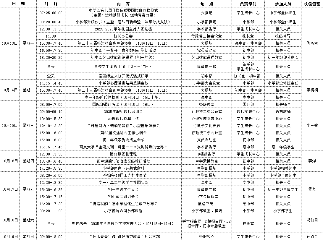 第七周工作安排(2025年10月13日—10月19日)