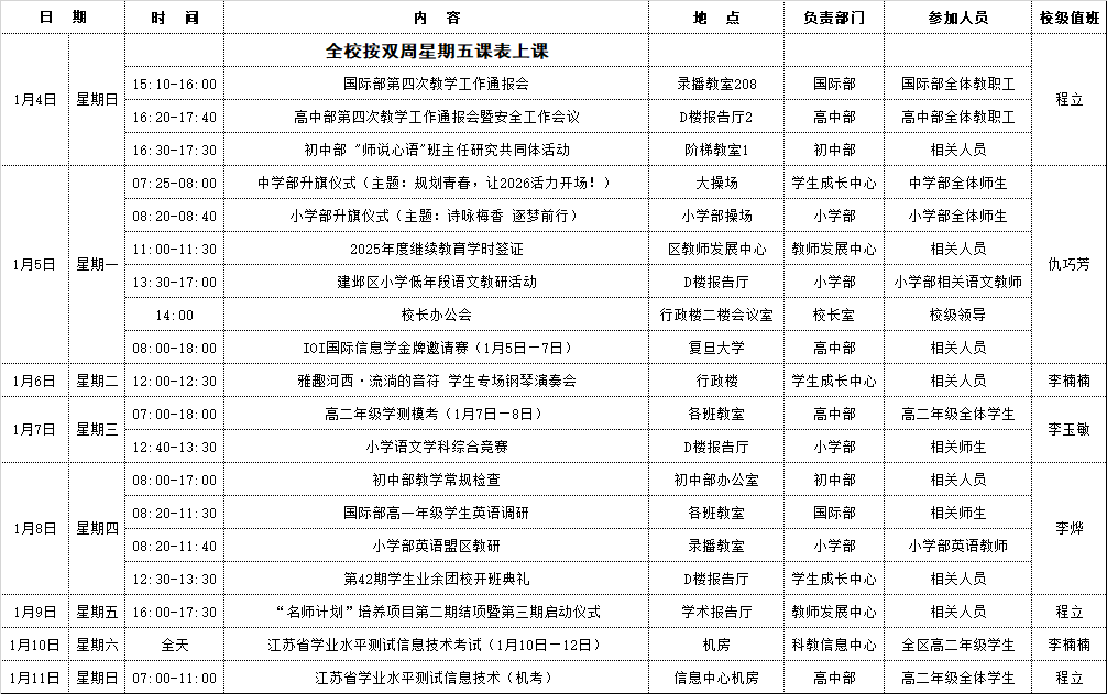 第十九周工作安排(2026年1月5日—1月11日)