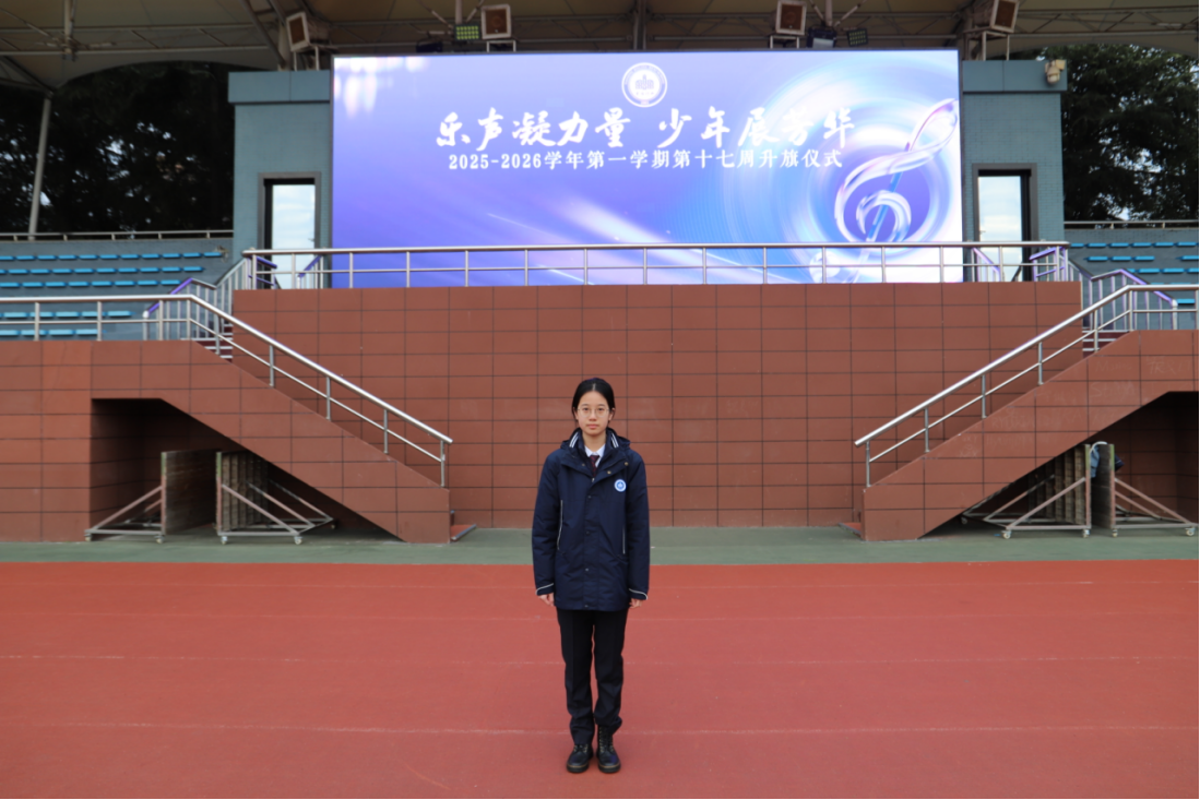 丙(朱丝阅):老师们,同学们,民乐是中华文化的瑰宝,承载着千年文明底蕴,凝聚着团结协作的精神力量。作为新时代少年,我们在民乐的熏陶下,读懂了传承的意义,更学会了做人的道理。