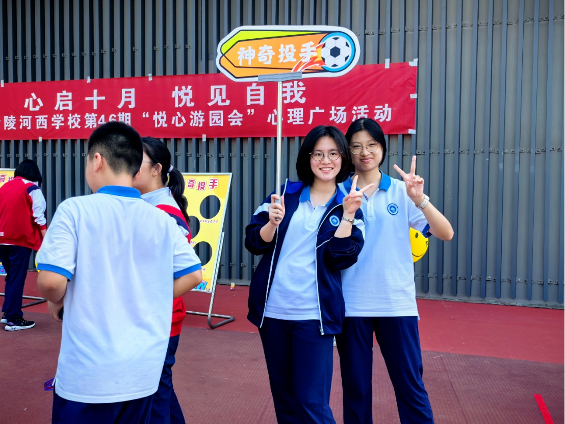 活动现场热闹非凡,丰富有趣的小游戏引得同学们纷纷驻足、踊跃参与。在“神奇投手”游戏区,两块板子十分显眼,一块标注着“作业太多”“学习内容好难”等常见压力源,另一块则写着“交到好朋友”“新学期适应不错”等让人愉悦的乐事。学生们汇聚力量,朝着对应的目标投球,投中压力源时大声喊出“我能克服”,投中快乐的事时欢快呼喊“我很开心”,在轻松的游戏氛围里畅快释放情绪。
