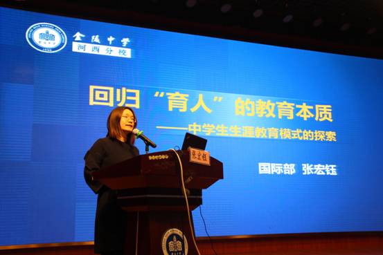 国际部张宏钰副主任的讲座题为《回归“育人”的教育本质》,围绕五个问题展开,分别为:什么是生涯规教育?生涯教育的目标是什么?生涯学科教学的内容要点有哪些?生涯教育与学科课程如何更好地融合?生涯教育与幸福教育的关系是什么?刘小兵老师在点评中说:张宏钰老师的讲座既有理论的高度,又有现实力量,对生涯教育和幸福教育有着“深沉的爱”。难能可贵的的是,她以宏观背景(国家层面、学校层面)为基点,从五个方面思考和实践。这样的研究对各学部都是有借鉴意义的。