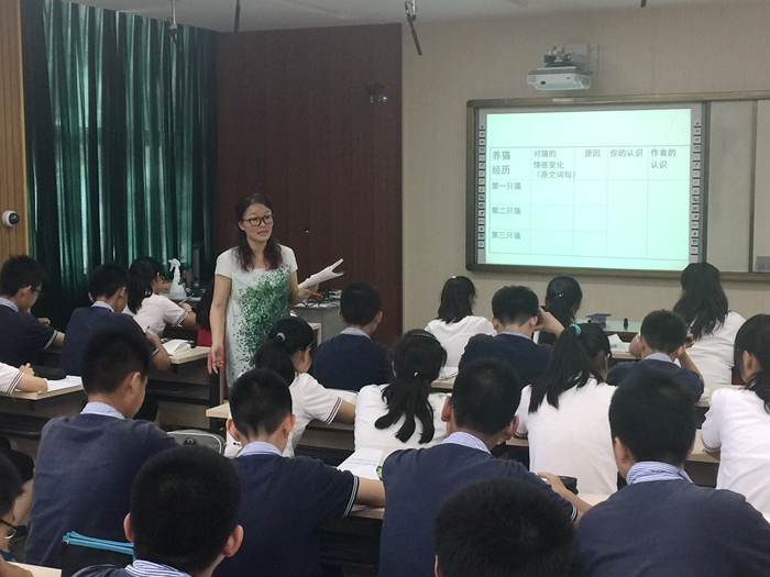 “课程·课堂·科研”卓越计划项目组成员:小学部周娇老师上了一堂生动活泼的二年级语文课《真想变成大大的荷叶》,初中部韦亚芹老师带来了有趣的《猫》的研讨课、高中部王建老师向大家展示了别有韵味的《声声慢》。三位老师自然流畅的课堂教学得到专家及听课老师们的充分肯定。