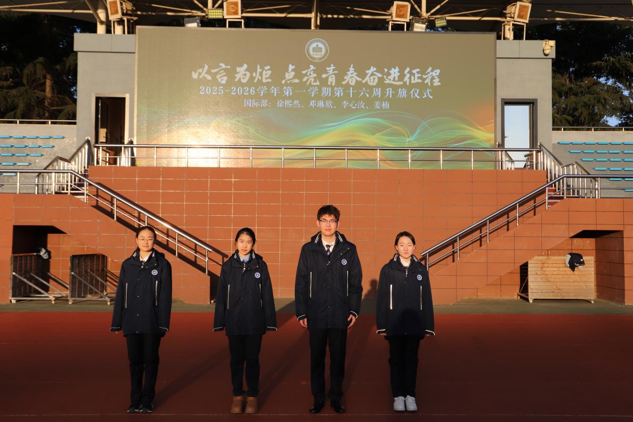 【徐熙然】 尊敬的老师们、亲爱的同学们: 大家早上好!我是国际部高二中加班的徐熙然。以往,我经常会作为升旗仪式的主持人站在这里,今天非常荣幸能以演讲者的身份,和大家分享言语表达的话题。 提起表达,你会想到什么?是辩论场上选手对阵时的慷慨陈词?还是外交部发言人面对记者提问时的沉着应对?或者是有人在日常分享中的滔滔不绝?哈佛大学教育学院曾对500名毕业生展开跟踪研究,结果表明:在校期间积极参与演讲、辩论等表达类活动的学生,毕业十年后有42%进入管理层,他们的职业满意度也更高。表达力带来的差距还会自然延伸到人际关系、心理健康等多个维度,成为个体发展的隐形助推器。 邓琳欣同学,你在11月下旬参加了国际部举办的TEDx活动,呈现了一场精彩的10分钟脱稿英文演讲,请问你在活动中收获了哪些经验? 【邓琳欣】 大家好!我是国际部高一7班邓琳欣。参加TED英文演讲是一次极具挑战的表达训练。最初构思讲稿时,我只能机械地罗列第一点、第二点、第三点,但总觉得措辞生硬、缺乏吸引力,后来在我的班主任刘畅老师的悉心指导下,我开始逐字逐句打磨细节、理顺逻辑。畅畅老师说“演讲的核心是与听众建立连接”,鼓励我用贴近生活的问题开场,带领听众一步步深入解码主题背后的底层逻辑。正是一次次的修改与演练,让我的表达从信息输出变成了观点传递,也让我逐渐克服了脱稿演讲的紧张感。这次活动让我意识到:好的表达是让听众懂得自己的所思所想,而表达的真实感和温度同样重要,我们要让言语成为情感沟通的工具! 李心汝同学,你在11个月奔赴浙江大学,参加了第十七届泛长三角地区模拟联合国大会,和队友一起赢得了“杰出代表团”的荣誉称号。你们是凭借哪些专业表现最终赢得组委会的高度认可呢? 【李心汝】 大家好!我是国际部高一8班李心汝。参加本次模联并收获集体佳绩,让我意识到了提升表达力不能一蹴而就,必须稳扎稳打、循序渐进。回顾过往,我参加过许多表达类的活动:小学的校内演讲比赛、口头作文竞赛、小小模拟联合国活动,还能在初中的辩论赛中获得省市级荣誉,这些都坚定了我的表达自信力。 来到国际部,我在自由包容的环境中得到了更多提升表达力的机会。这次,我和模联社团的另外八位成员代表学校去到杭州参赛,与众多顶尖学府的大学生们共议国际事务,直观感受到了中、英文委员会议事氛围的差距。尽管压力巨大,但我们毫不退缩,凭借严谨的议题调解