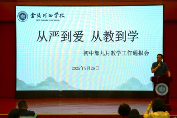 为持续推进教学理念革新,聚焦育人方式转变,我校初中部于9月26日在D楼报告厅召开“从严到爱,从教到学”初中部九月教学通报会。会议由初中部学工处钱静主任主持,全体初中部教师齐聚一堂,共同探讨如何在教育教学中实现从严格管理到关爱引领、从知识传授到赋能学生主动学习的有效路径。