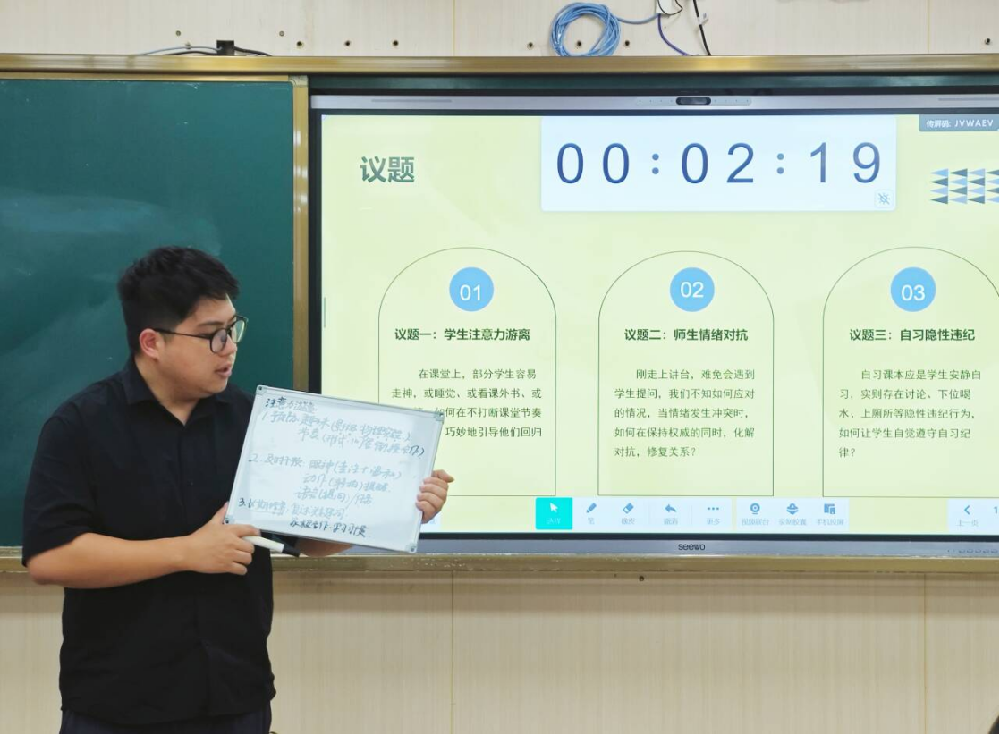 面对孩子自习课的专注力问题,第三组老师给出诗意解法:以明确规则为前提,配上PPT的温情提醒,让纪律提醒充满温度。教师通过集体教育、个别谈心、家校协作等多种方式,引导孩子读懂时光的重量,在自律中收获成长。