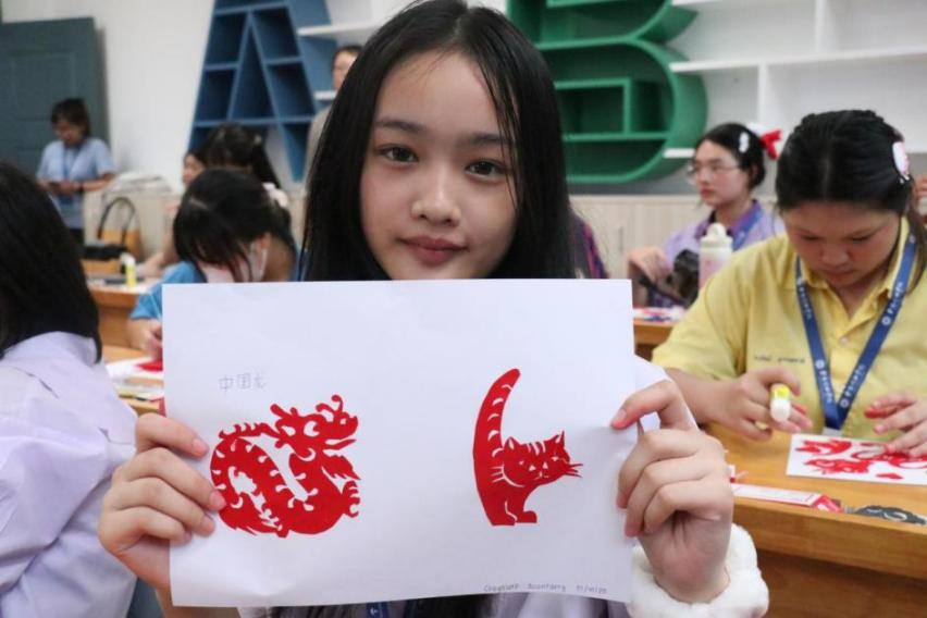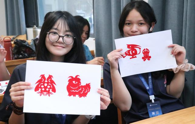 近日,我校迎来了一批特殊的客人——来自泰国的访学学生。为帮助他们深入了解中华优秀传统文化,初中部特别安排了一堂生动有趣的剪纸艺术体验课,由我校资深剪纸艺术教师朱桂芳亲自授课。