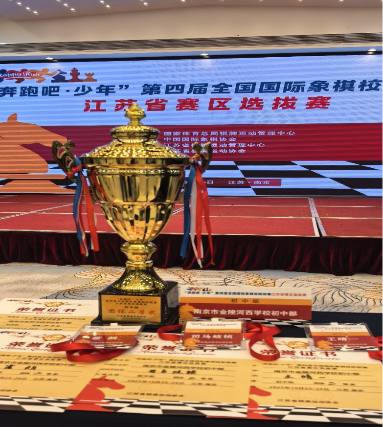 10月25日-26日,“奔跑吧·少年”第四届全国国际象棋校际联赛江苏省赛区选拔赛在南京市举办,我校初一5班王晴一,初一6班霍朗和初一12班司马岐桢三位小棋手和汇聚赛场的新锐棋手们,以沉着应战的姿态在方寸棋盘间展开智力的博弈,用黑白对弈诠释着新时代少年的锐气与锋芒,以运筹帷幄展现着中国少年的智慧与担当。经过二天多轮比赛,获得初中组团体二等奖。