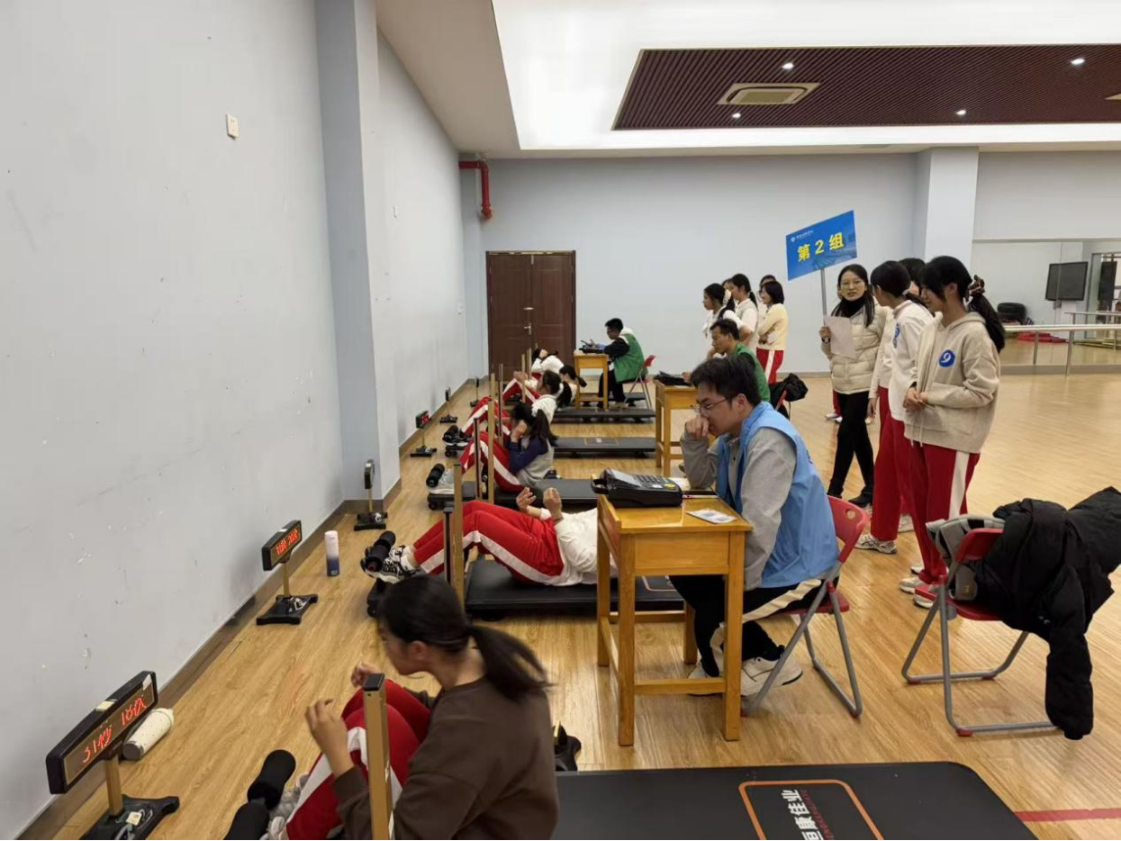 测试现场,气氛紧张而热烈。在50米跑赛道上,学子们如离弦之箭,全力冲刺,耳畔的加油声此起彼伏;立定跳远区域,大家屈膝、摆臂、蹬地,每一次跳跃都凝聚着力量与期待800米/1000米,第一名冲过终点线时,全场爆发出雷鸣般的掌声与欢呼,志愿者立刻冲上前递水、搀扶;而落在后面的同学,也没有被冷落——跑道旁的呐喊声依旧响亮,“别放弃!你已经很棒了!”“坚持到终点就是胜利!”老师同学的鼓励声,让每一位咬牙跑完最后一程的学子,都在冲线的瞬间收获了满场敬意。面对坐位体前屈等柔韧性项目,同学们也认真调整姿势,努力突破自身极限。全程中,体育教师耐心指导动作规范,志愿者同学协助维持秩序、记录数据,整个测试过程井然有序,充分体现了我校师生的协作精神。
