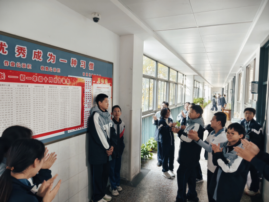 而在初一四班的教室里,另一场关于感恩的暖心故事正在上演。同学们自发策划,为班主任朱老师准备了一场秘密生日惊喜。课间时分,黑板被密密麻麻的祝福填满——“朱老师生日快乐!”“您辛苦啦!”彩色横幅与装饰将教室装点成温暖的庆典现场。