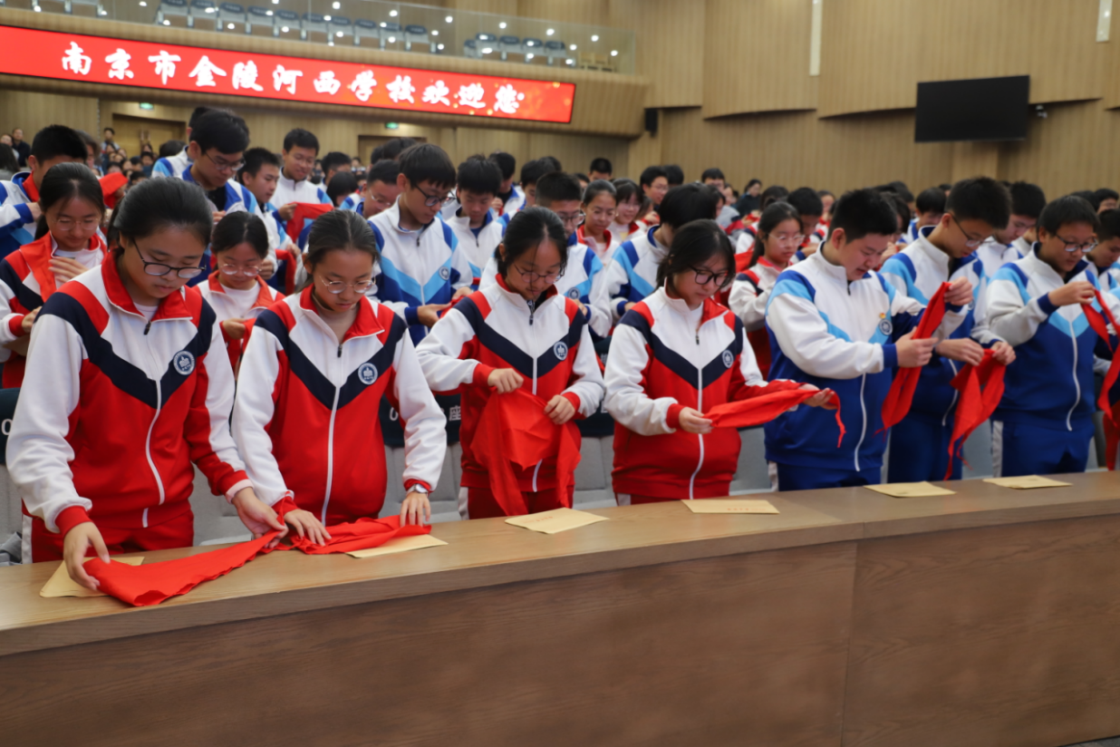 仪式的高潮环节——珍藏红领巾在庄重的氛围中进行。在主持人的统一指令下,队员们轻轻摘下胸前的红领巾,细心折叠,郑重放入信封中。这一刻,不仅是对一段身份的告别,更是对成长记忆的永恒珍藏。