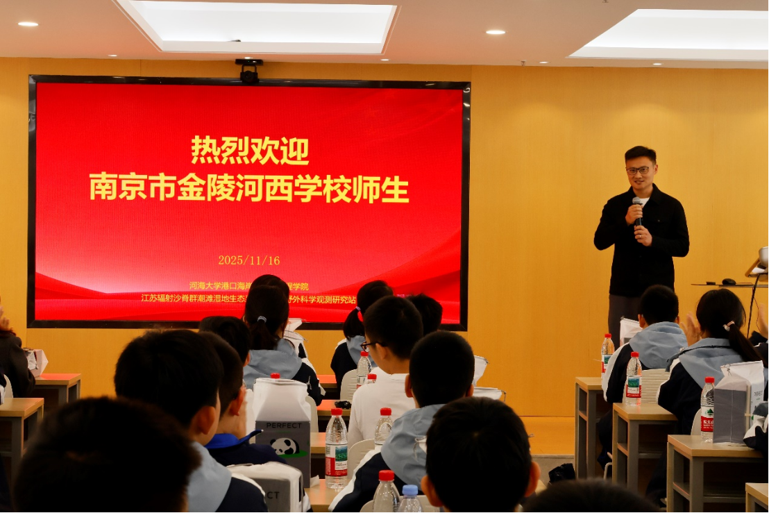 当课堂知识遇上真实科研场景,当少年好奇心碰撞前沿学术力量,一场关于河口海岸的科学探索之旅就此启程。2025年11月16日14:00-16:30,由江苏辐射沙脊群潮滩湿地生态系统教育部野外科学观测研究站、河海港口海岸与近海工程学院联合主办,南京市金陵河西学校协办的“多彩的河口海岸”科普活动,在河海大学圆满落幕。南京市金陵河西学校初一年级67名学子怀揣热忱,走进高校校园,开启了一场兼具知识与趣味的科学启蒙。