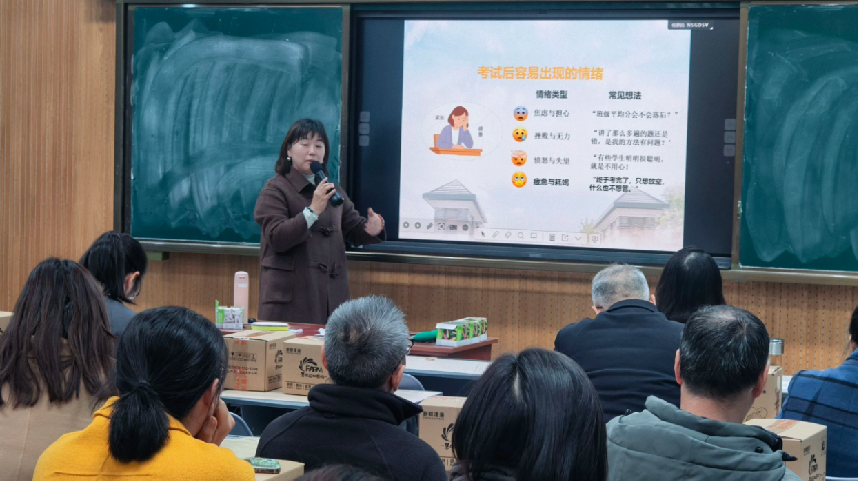 会议伊始,戴蓉校长发表了高屋建瓴的讲话。戴校长首先对初三全体教师在前期工作中付出的努力和取得的阶段性成果给予了充分肯定。她强调,初三是学生成长的关键期,本次质量分析会不仅是一次成绩的复盘,更是一次教育理念的深化和教学策略的优化。戴校长希望全体教师能以数据为镜,看清优势与不足;以学生为本,关注个体差异与发展;以团队为翼,加强沟通与协作,凝聚共识,形成合力,共同推动初三年级教育教学质量再上新台阶。