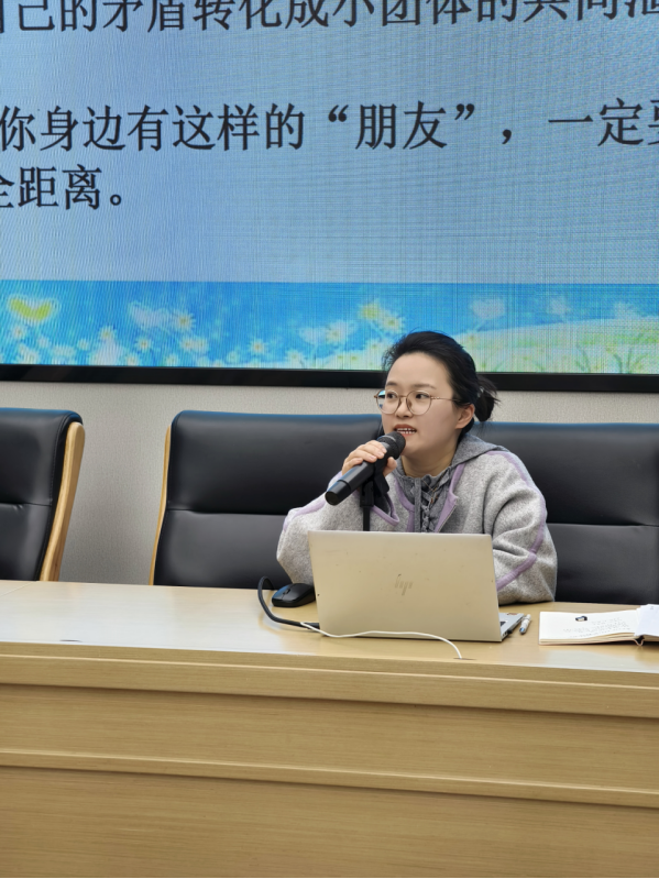 紧随其后,学校心理教师谢丽芹老师为全体初一教师带来了一场别开生面的心理疏导活动。通过轻松的互动与专业的讲解,她帮助老师们缓解工作压力,提升情绪管理能力,旨在让教师们以更积极、健康的心态投入日常工作中,传递教育的正能量。