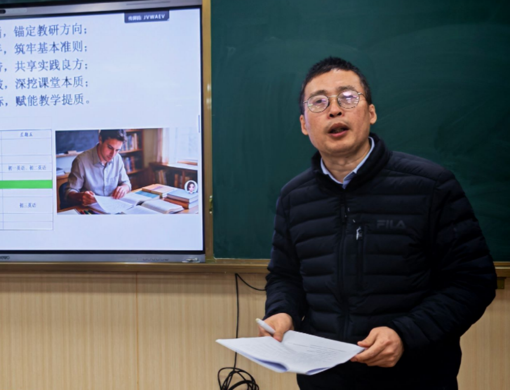 随后,课程教学处陈宏祥副主任则从教学常规管理的角度,强调规范执行与过程监督的重要性,并通报了近期区教学视导的反馈结果。他结合实例指出,扎实的常规是教学质量的基础,也是教育创新的前提。