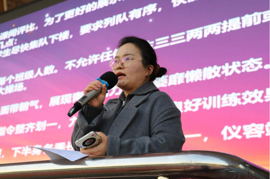 大会在庄严而热烈的氛围中拉开帷幕。主持人同学深情回望全体学子从懵懂青涩到从容自信的成长旅程:“从第一次走进初中课堂的忐忑不安,到如今从容应答的底气十足;从初入校园时的陌生疏离,到此刻同窗间的默契相伴,我们在时光里蜕变,在奋进中成长。”他们代表全体学生向辛勤耕耘的老师们致以最诚挚的敬意,更向全场同学发出号召:“以榜样为灯,逐光而行;以进步为梯,拾级而上,在青春的赛道上跑出属于自己的精彩!”