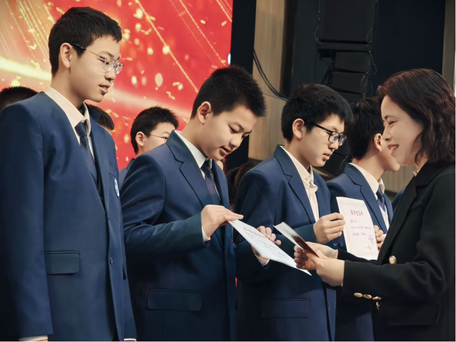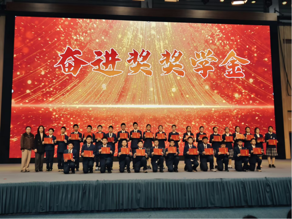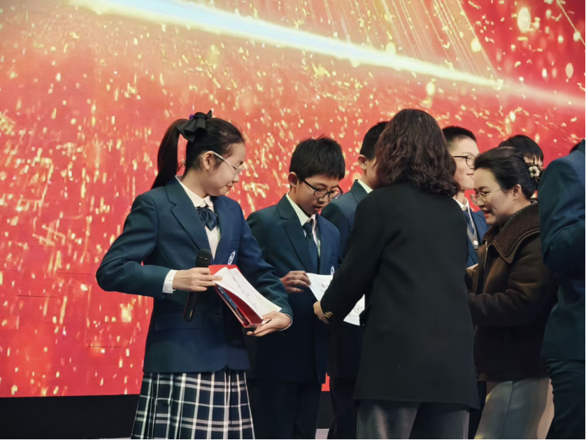 活动在两位主持人的热情开场中拉开帷幕。颁奖环节率先进行,“奋进奖学金”和“星光奖学金”获奖名单在大屏幕上滚动展示,获奖同学依次上台,初中部副校长倪长娥、初一年级主任高菲亲自为其颁奖,现场掌声不断。这些同学以拼搏为桨、以梦想为帆,在青春的航道上乘风破浪,为全体初一学子树立了前行的标杆。