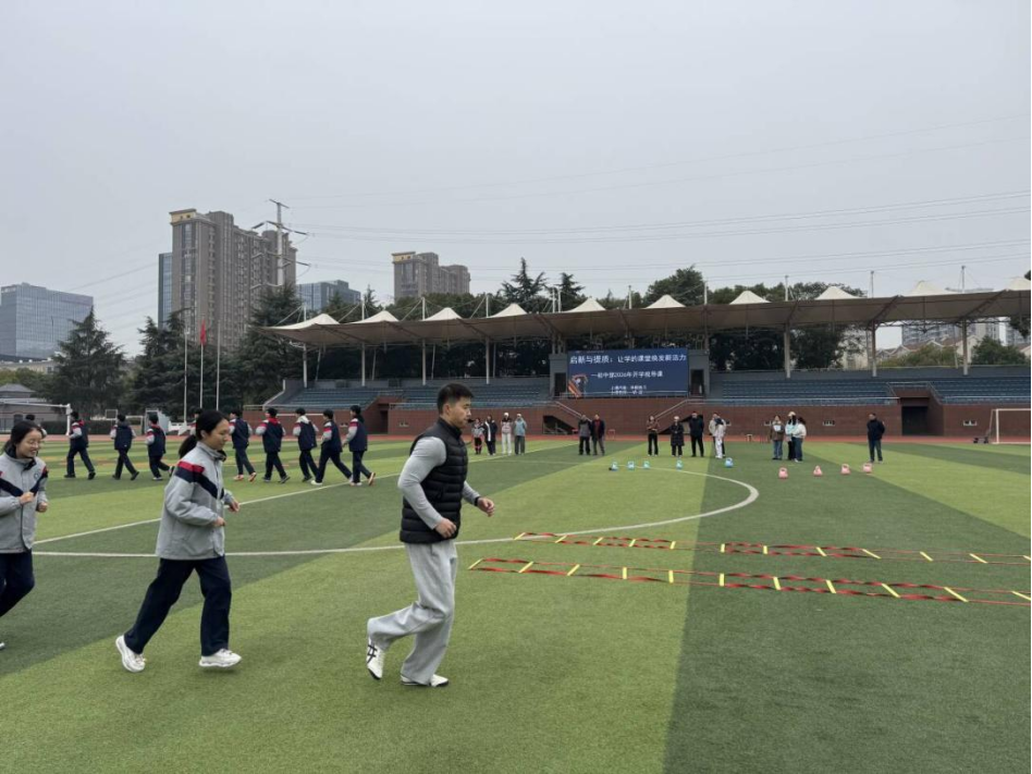 体育课堂上,胡诚老师采用“分组轮转”和“分层练习”相结合模式,充分调动学生参与体能练习的积极性。在技能学练环节,学生分组操作绳梯、波速球等器材,在沉浸式体验中掌握运动技巧,同时提升了身体素质与团队协作能力。