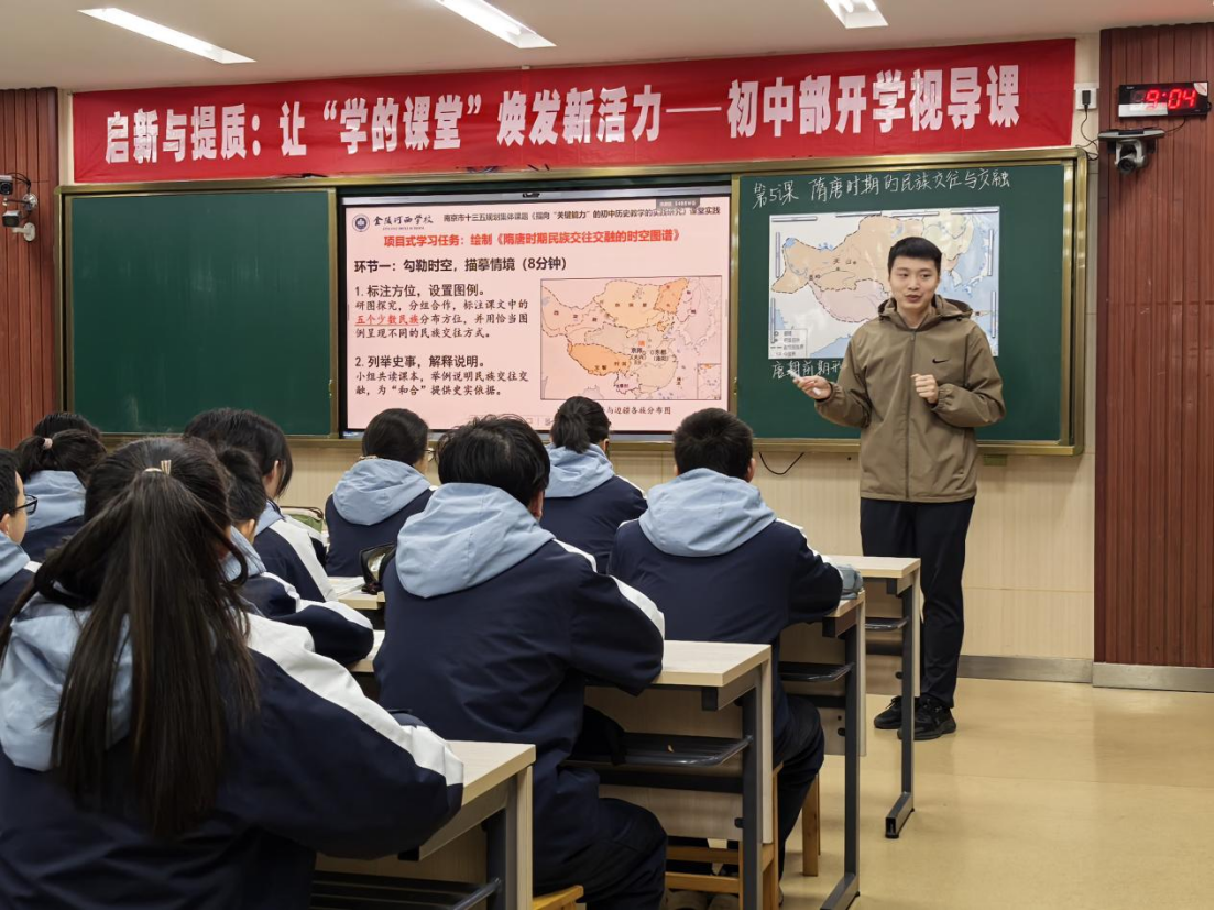 历史课堂上,陆锦骅老师以名言导入,紧扣“和合”文化精髓,通过小组合作研图探究、成果汇报、史料分析等环节,引导学生感悟隋唐民族交往“有战有和、以和为主”的特点,结合史料论述,传承中华优秀“和合”理念,布置特色实践作业深化学习效果。