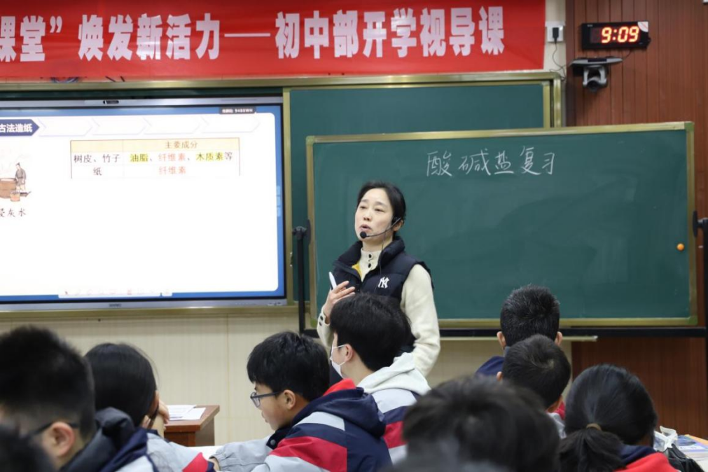 化学课堂上,包晓芳老师以“造纸术”为真实情境,围绕酸碱盐核心知识展开初三复习,融合传统文化与学科内容。通过辨纸、废液探究等实验活动,落实知识结构化与科学探究目标,衔接教材要求,培养学生证据推理能力与绿色化学理念,实现知识、能力与素养的统一。
