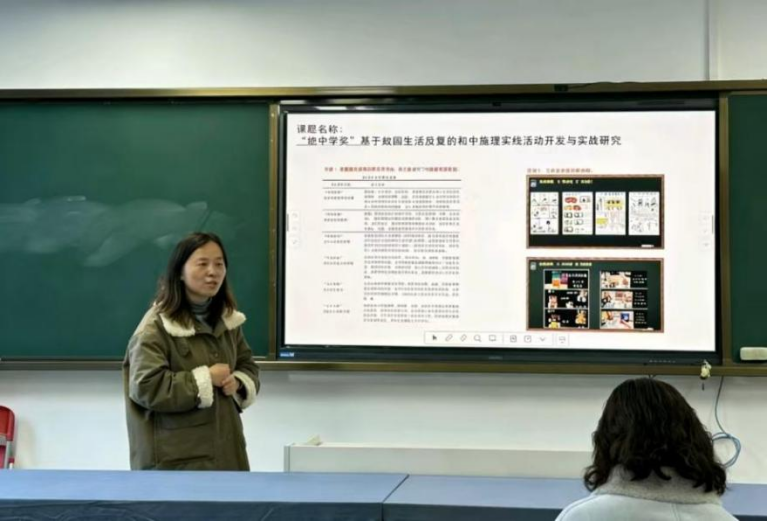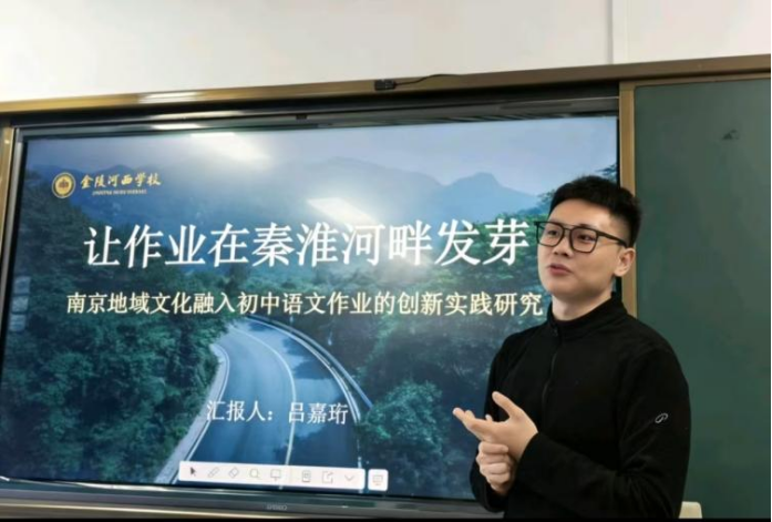 吕嘉珩老师以《让作业在秦淮河畔发芽——南京地域文化融入初中语文作业的创新实践研究》为题,分享将南京六朝文脉、非遗技艺与红色记忆融入作业设计的探索,构建 “感知—创作—跨学科探究”三阶模型,推动作业成果具象化。