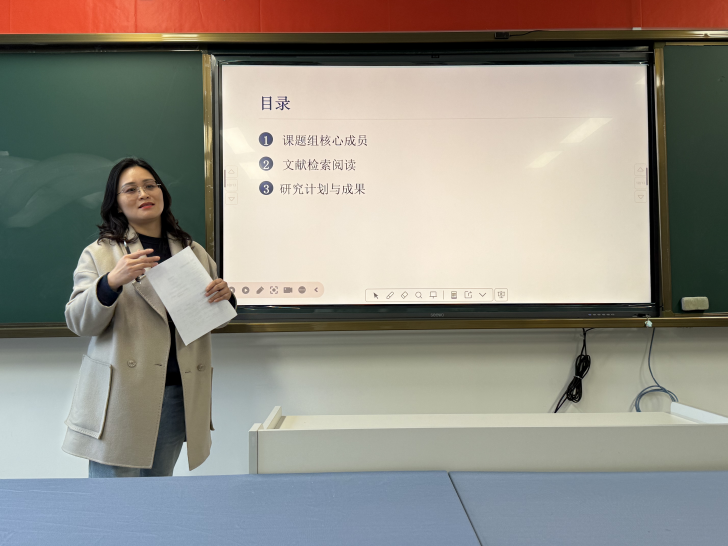 孙雅莉老师就《习近平文化思想融入初中思政课议题式教学策略研究》展开阐述,介绍系统文献研读安排与 “理论梳理—现状诊断—模型构建—实践验证” 的研究路径,明确议题库、课例集等阶段性成果与结题安排。