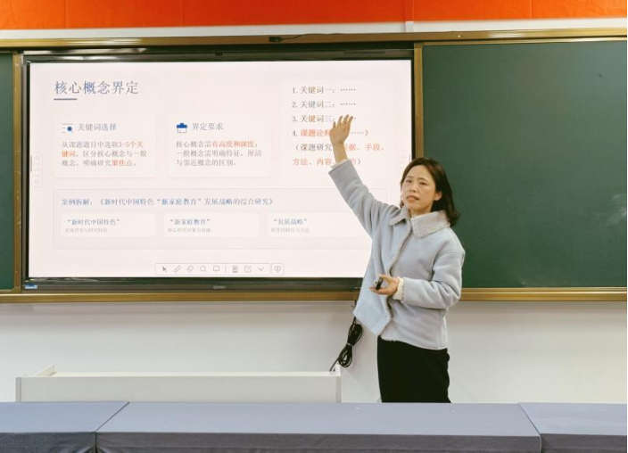 丁琳老师就《“做中学美”—— 基于校园生活场景的初中物理实践活动开发与实践研究》展开阐述,介绍系统文献研读安排与“案例设计 — 实践落地 — 成果凝练 — 模式推广”的研究路径,明确实践活动案例集、学生成果作品集、校本课程资源包等阶段性成果与结题安排。
