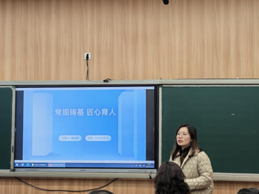 会议伊始,课程教学处主任滕丽娜作了题为 “常规铸基,匠心育人” 的专题汇报。她立足教学常规的细节管理,从备课规范、课堂实效、作业批改及反馈机制等方面进行了深入阐述。滕主任强调,教学质量是学校的生命线,常规管理不是束缚,而是提升教学效能的基石。她要求各组长在日常工作中要“抓细、抓小、抓实”,将匠心精神融入到教学的每一个环节,确保教学秩序的平稳有序与教学质量的稳步提升。