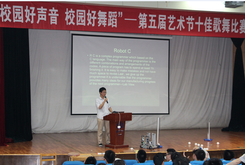 | 2015年5月27日,第六期“Jinling Voice”演讲秀于千人报告厅顺利举行,国际部全体师生参加了本次活动。 首先为大家开讲的是本学期初在国际FTC机器人比赛中获得突出成绩的“和兮”战队。在聂阳老师的悉心指导和队长金韬及多位成员的不懈努力下,他们设计和制作出了非常具有科技感和创意的机器人。金韬和他的队员们分别为在场师生介绍了比赛内容、设计的思路和当时遇到的困难,并在演讲最后现场为同学们演示了机器人的各种动作,引得观众阵阵欢笑。 紧接着出场的是来自国际部高二(6)班的傅恒同学,他同时也是本期“Jinling Voice”的主持人。他流利的英语和以“追逐梦想”为主题的演讲给所有观众都留下了深刻的印象。 第三位演讲者张森平同学同样来自国际部高二(6)班,他图文并茂地阐述了“家庭”在每个人生活中的重要性,给观众留下了许多思考的空间。 三个风格迥异的精彩演讲收获了无数掌声,第六期“Jinling Voice”圆满落下帷幕! |