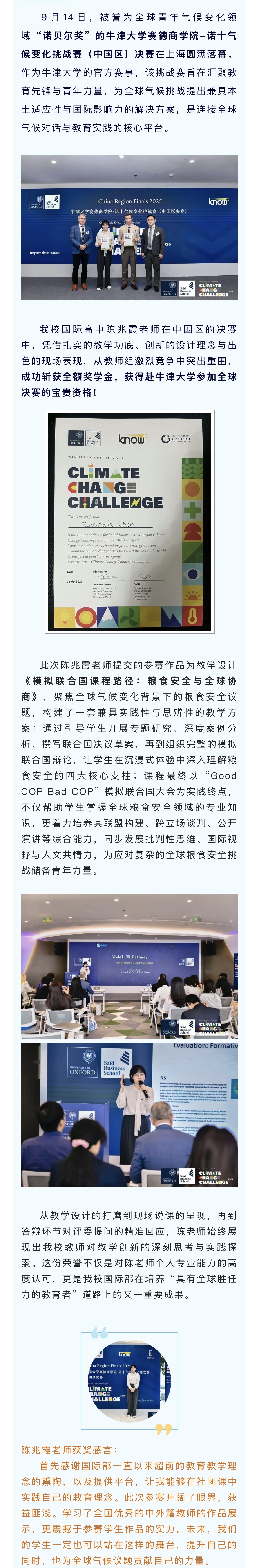 国际高中青年教师获全额奖学金赴牛津大学参加全球总决赛!