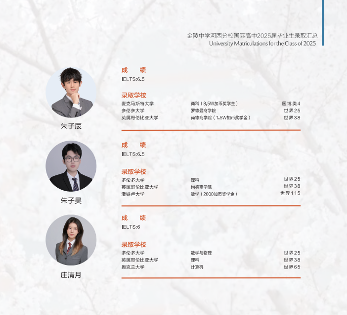 2023年金陵中学河西分校国际部中加班录取结果汇总(截至4月2日)