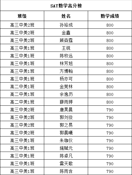 SAT高分榜